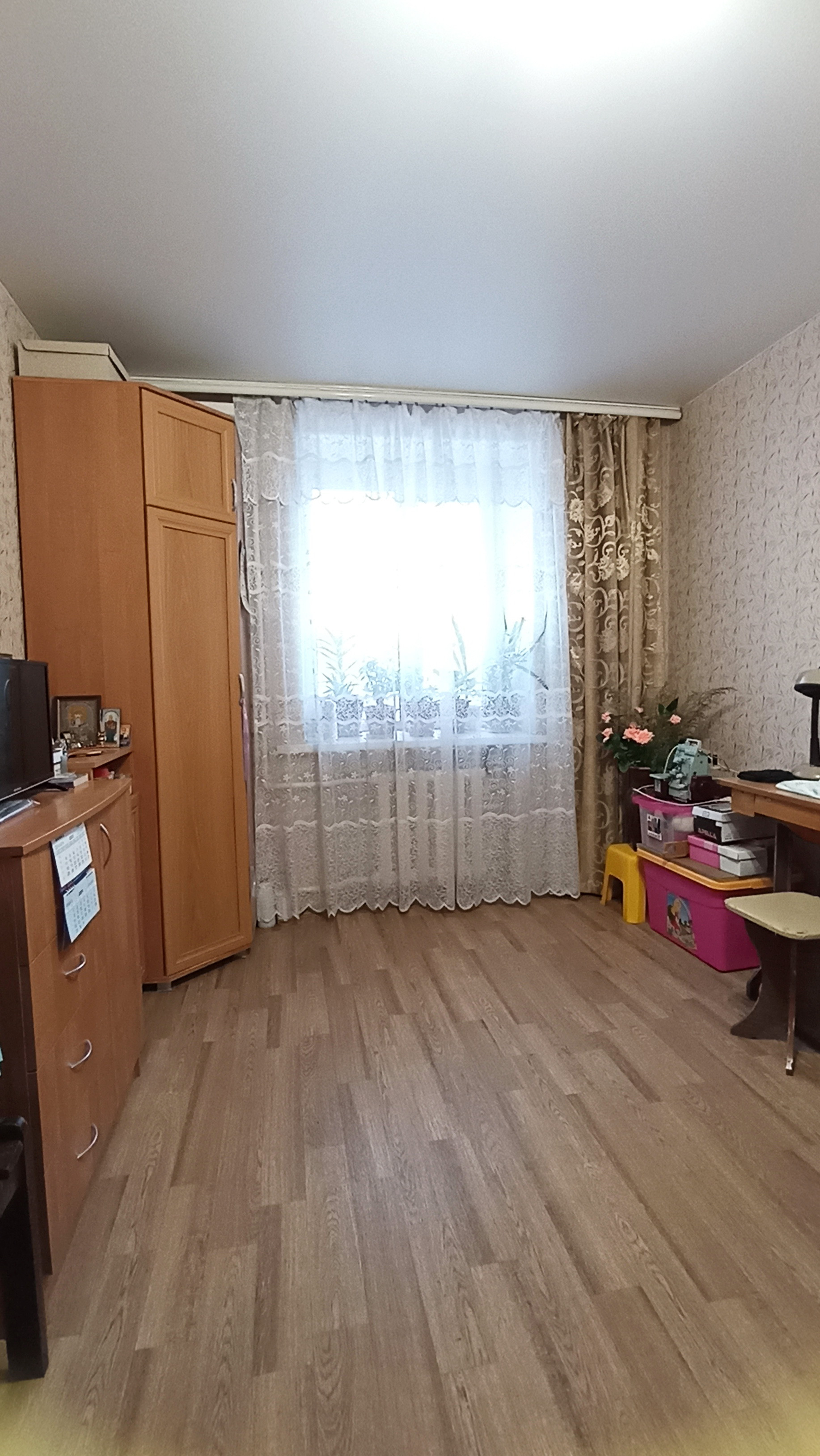 - большой отделанный балкон на два окна
