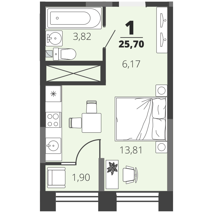 Общая площадь 26 м2