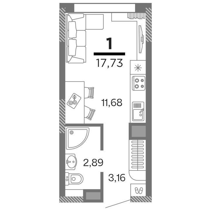 Общая площадь 17.73 м2