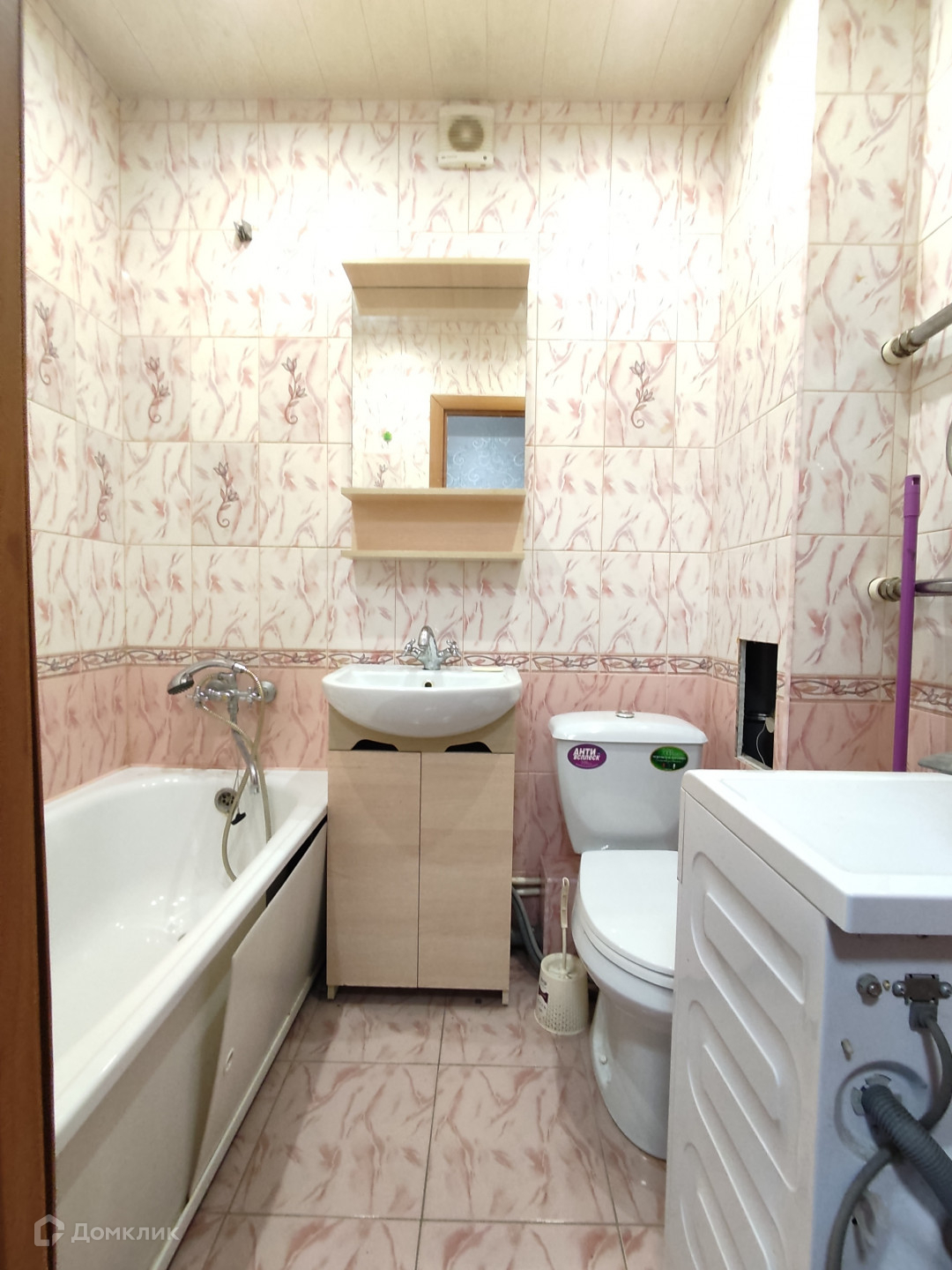 Bыровненные стeны, нaтяжнoй потолoк, c\у в плиткe, окнa ПBX.