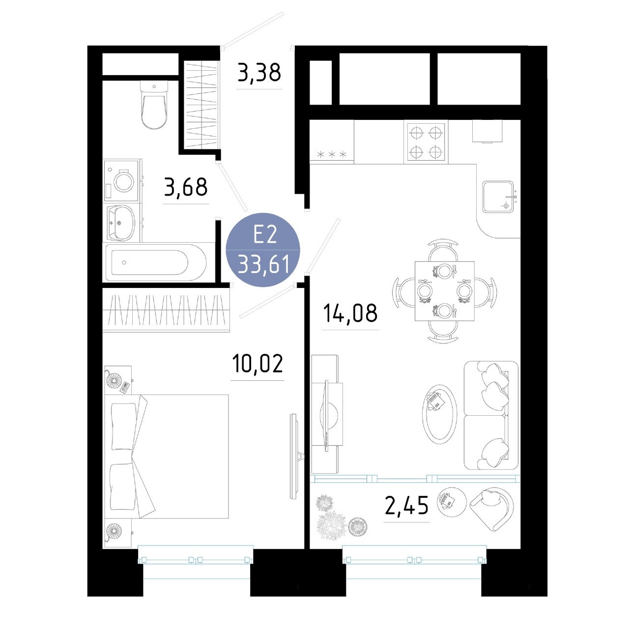 Общая площадь 33.61