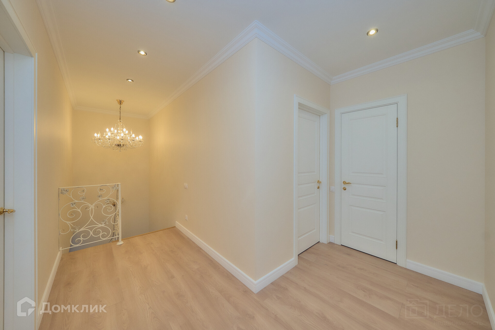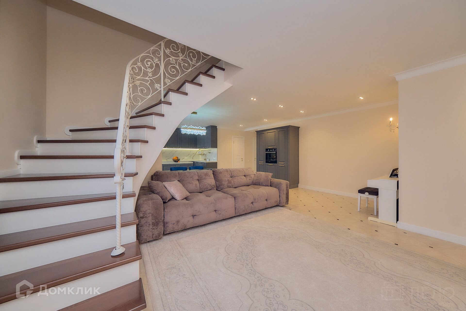 На первом этаже шикарная кухня-гостинная, раздельный санузел и спальня. На втором этаже две спальни, гардеробная и совмещенный санузел.