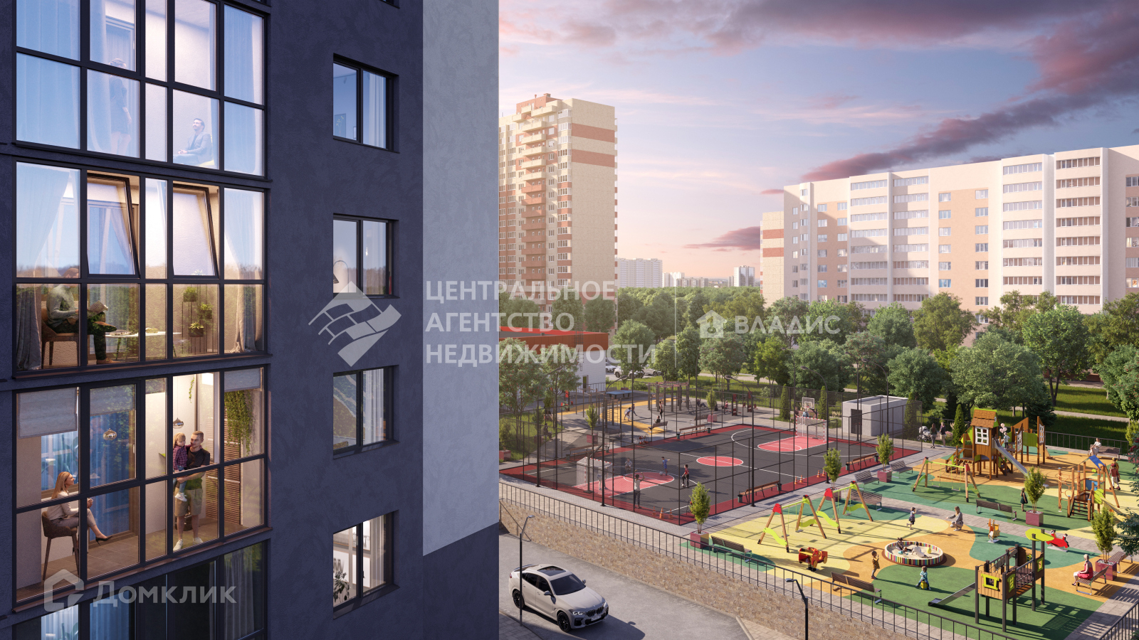 Дом из 25 этажей дает возможность наслаждаться потрясающими панорамами и красивыми закатами прямо из окна своей квартиры.