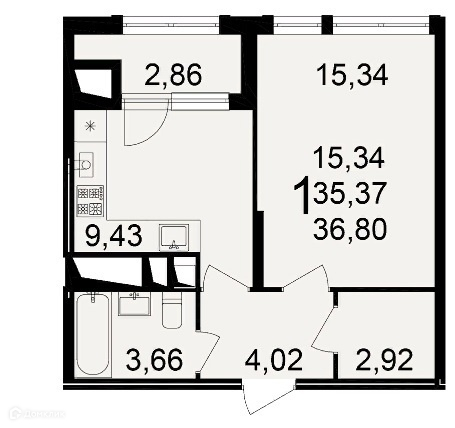Общая площадь 36.8 м2