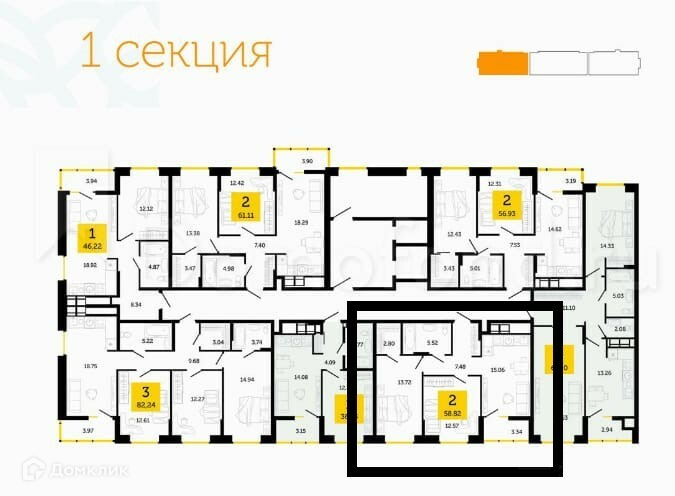 Общая площадь 58.8 м2