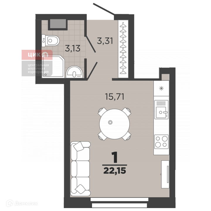 Площадь кухни 22.15 м2
