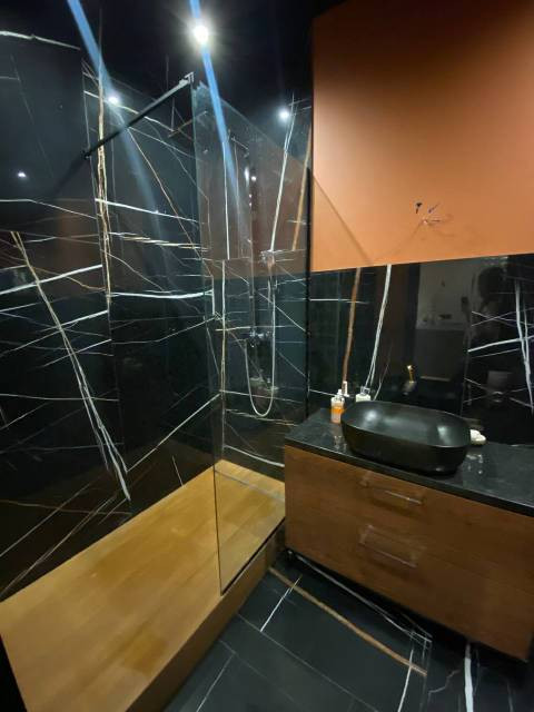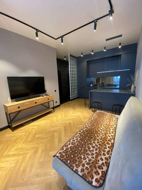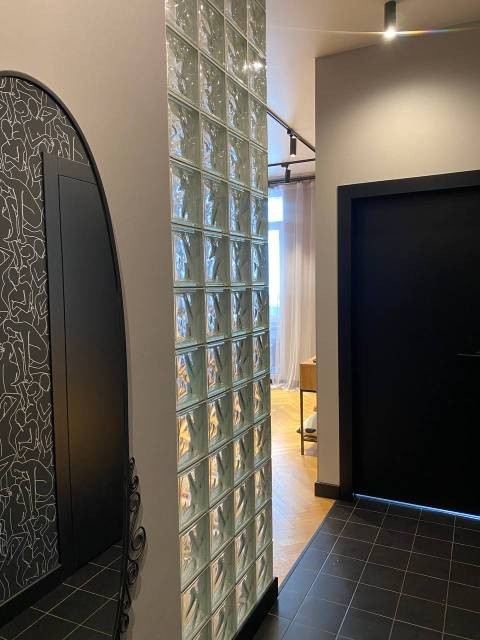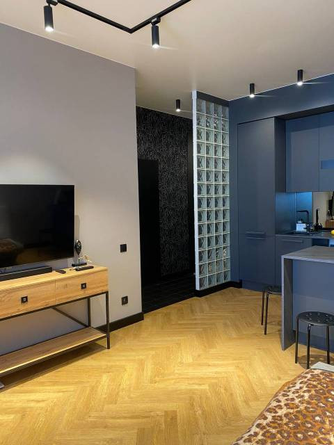 ЕВРО-2 с большой кухней-гостиной. Индивидуальное отопление. Высота потолков - 3м, что увеличивает пространство и добавляет света. В отделке использованы исключительно качественные материалы. Светильники трековые Lightstar Volta. На полу ламинат Berry Alloc 8мм для укладки "елочкой". Стильная, многофункциональная встроенная кухня, кондиционер.