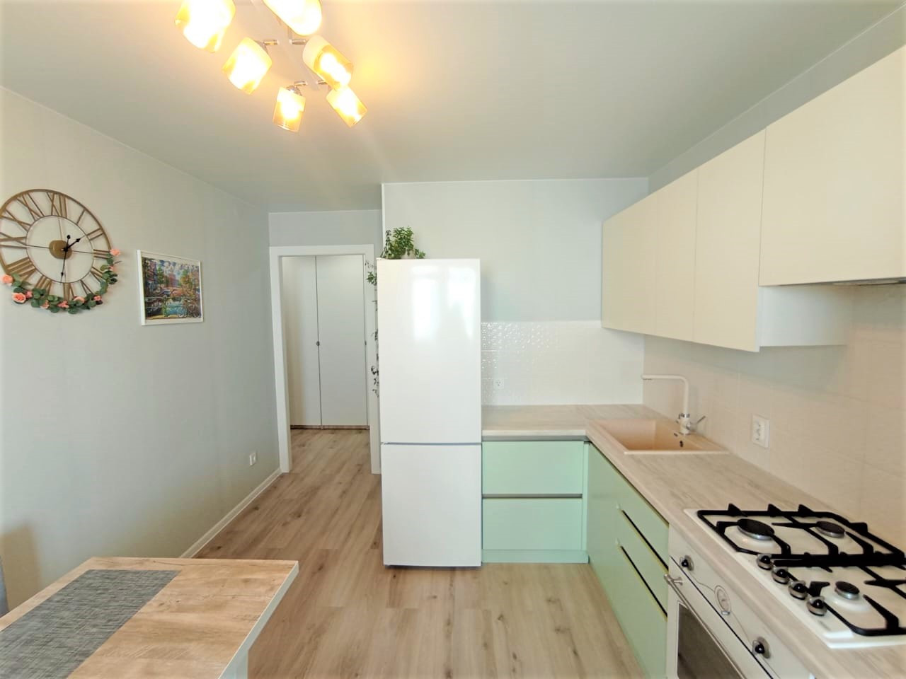 Квартира в состоянии - заходи и живи, не требует вложений, в подарок остается встроенная кухня со встроенной техникой, кондиционер, с/у - плитка, лоджия отделана.