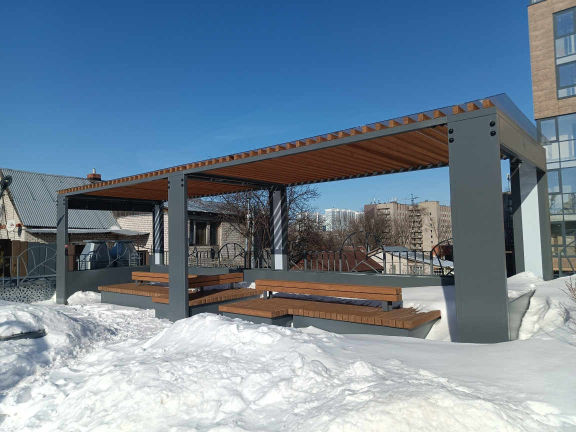 Площадки для отдыха детей и взрослых, подогреваемые лавочки с USB-портом, пешеходные дорожки с обогревом, безконтактные раздвижные двери.