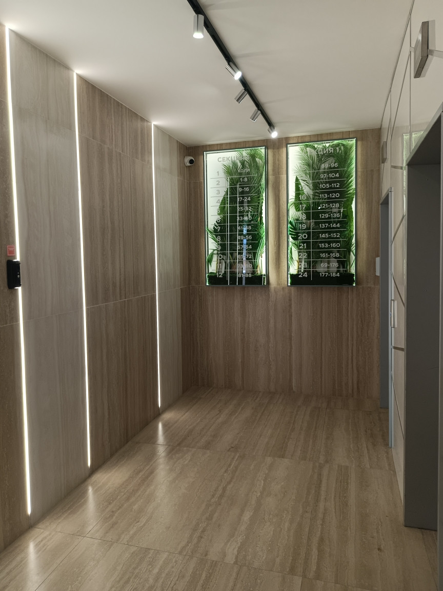 Современные подъезды с безбарьерной средой, 3 грузовых лифта "OTIS", благоустроенный зеленый двоp и прилегающая территория с водопадами.