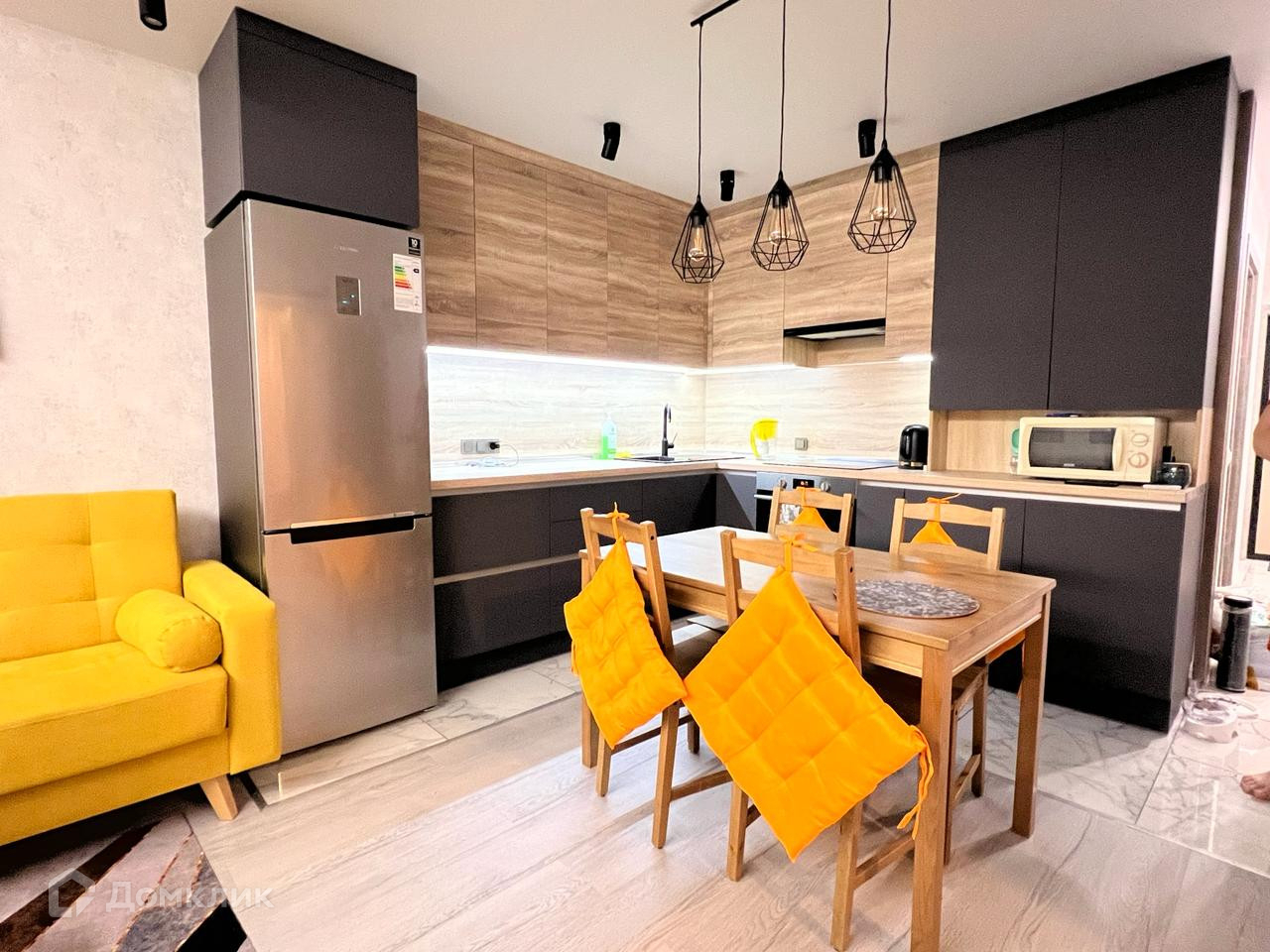 Вся мебель и техника, включая кухонное оборудование, куплены у надежных производителей   Кухня произведена под заказ и оснащена всем необходимым для приготовления и хранения пищи.