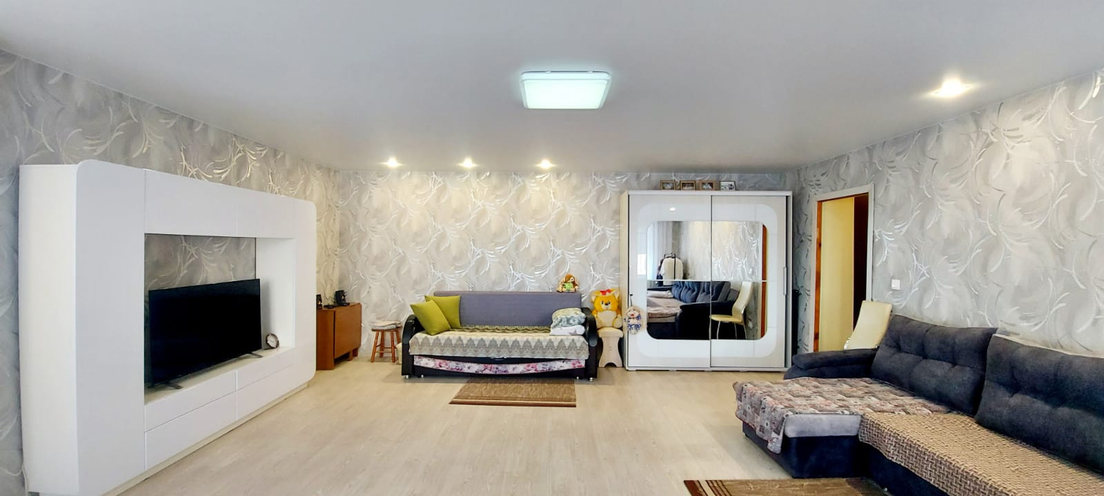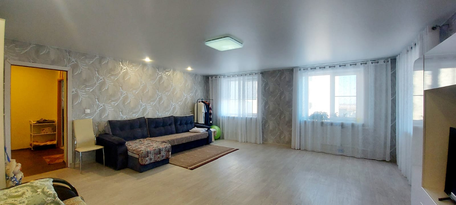 + отличительной особенностью нашей квартиры является огромный зал 36,6 кв.м., у которого три окна, а значит в комнате всегда будет много света, с выходом на застекленную лоджию - а это дополнительное место для хранения вещей и не только;