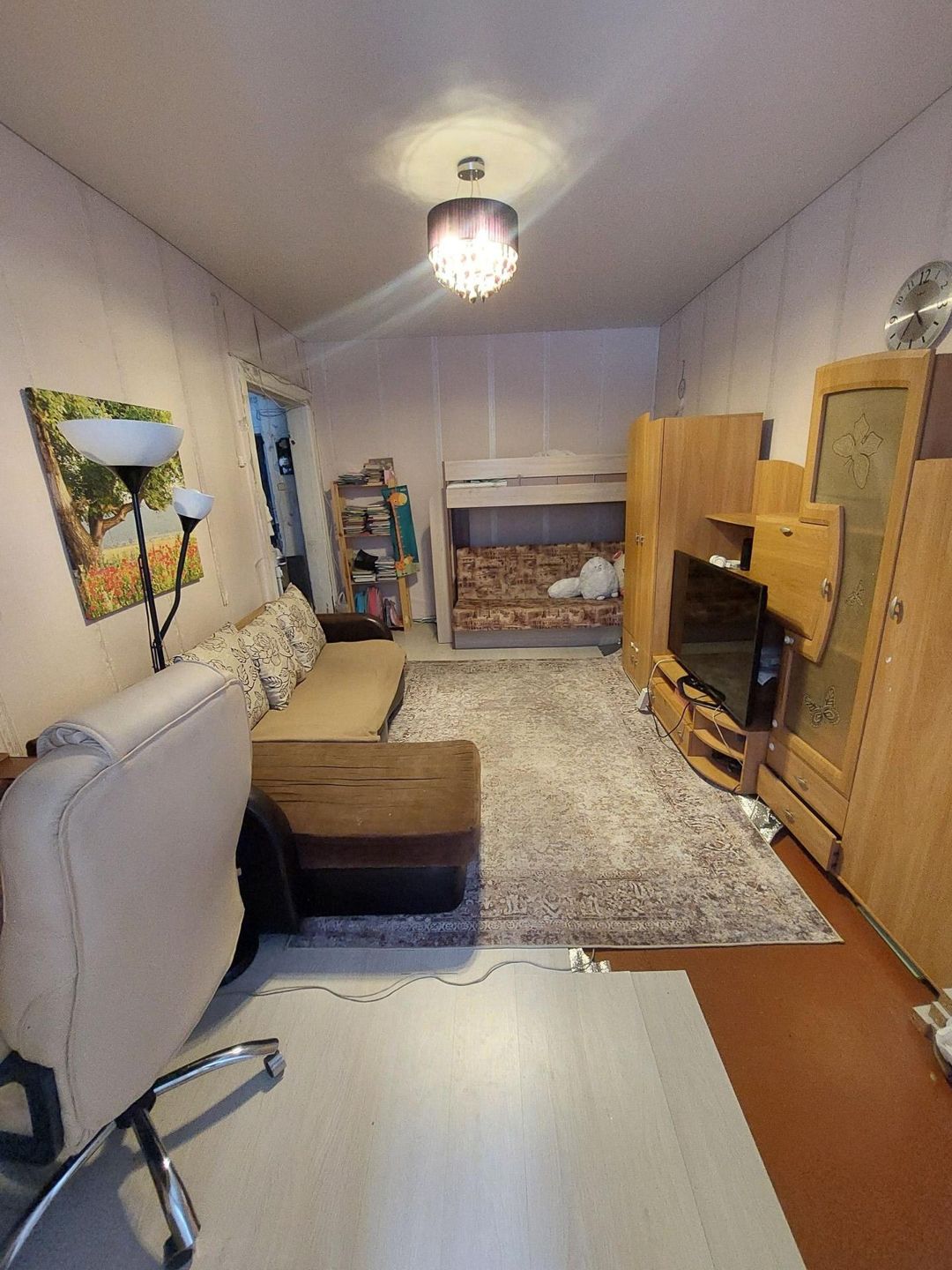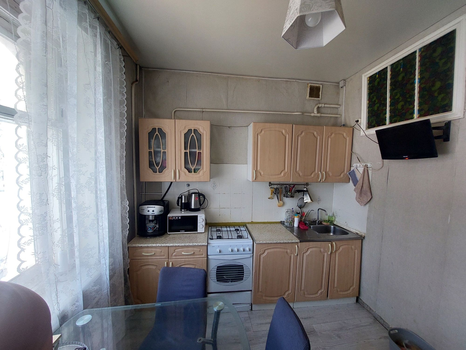 Потолки натяжные,газовая колонка Baxi ,горячая вода круглый год, встроенный шкаф-купе в коридоре,антрисоль,балкон.Крыша не течёт.