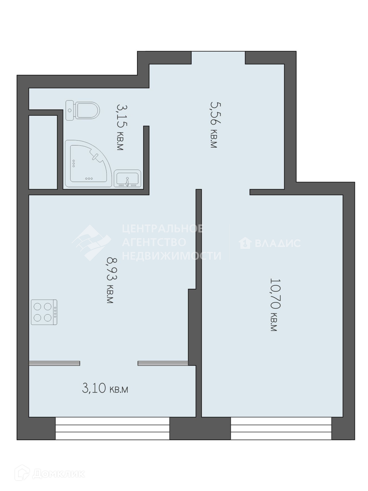 Жилая площадь 10.7 м2