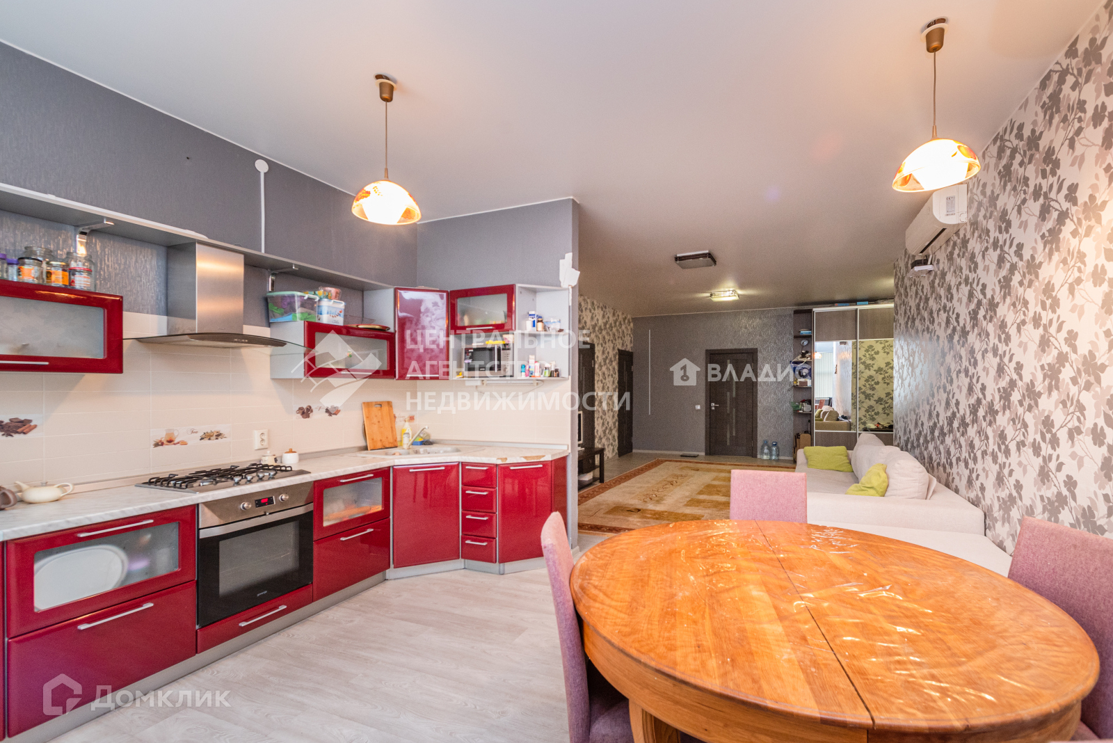 В квартире три изолированные комнаты, большая кухня-гостиная с зонированием обеденной зоны и зоны отдыха.