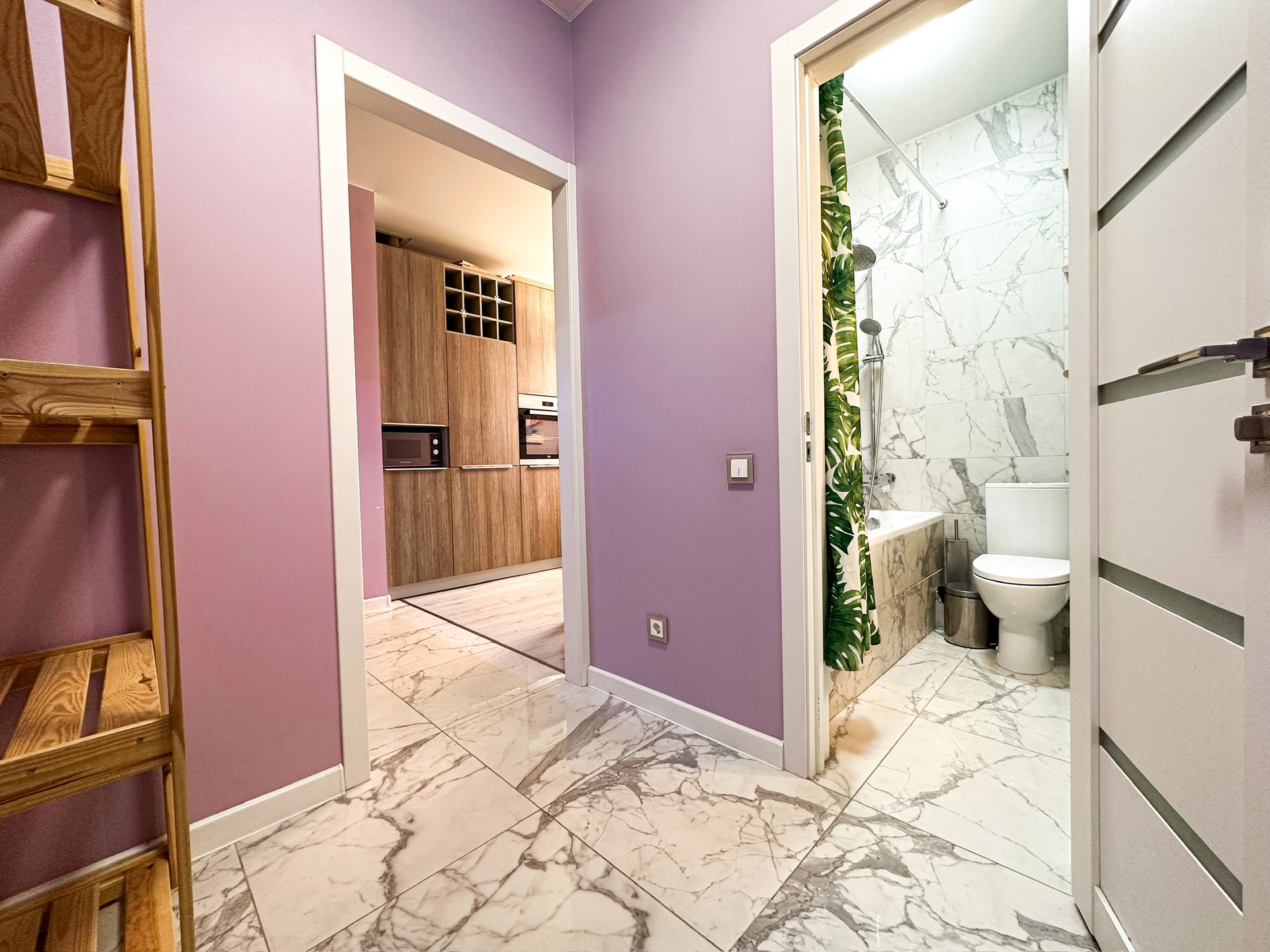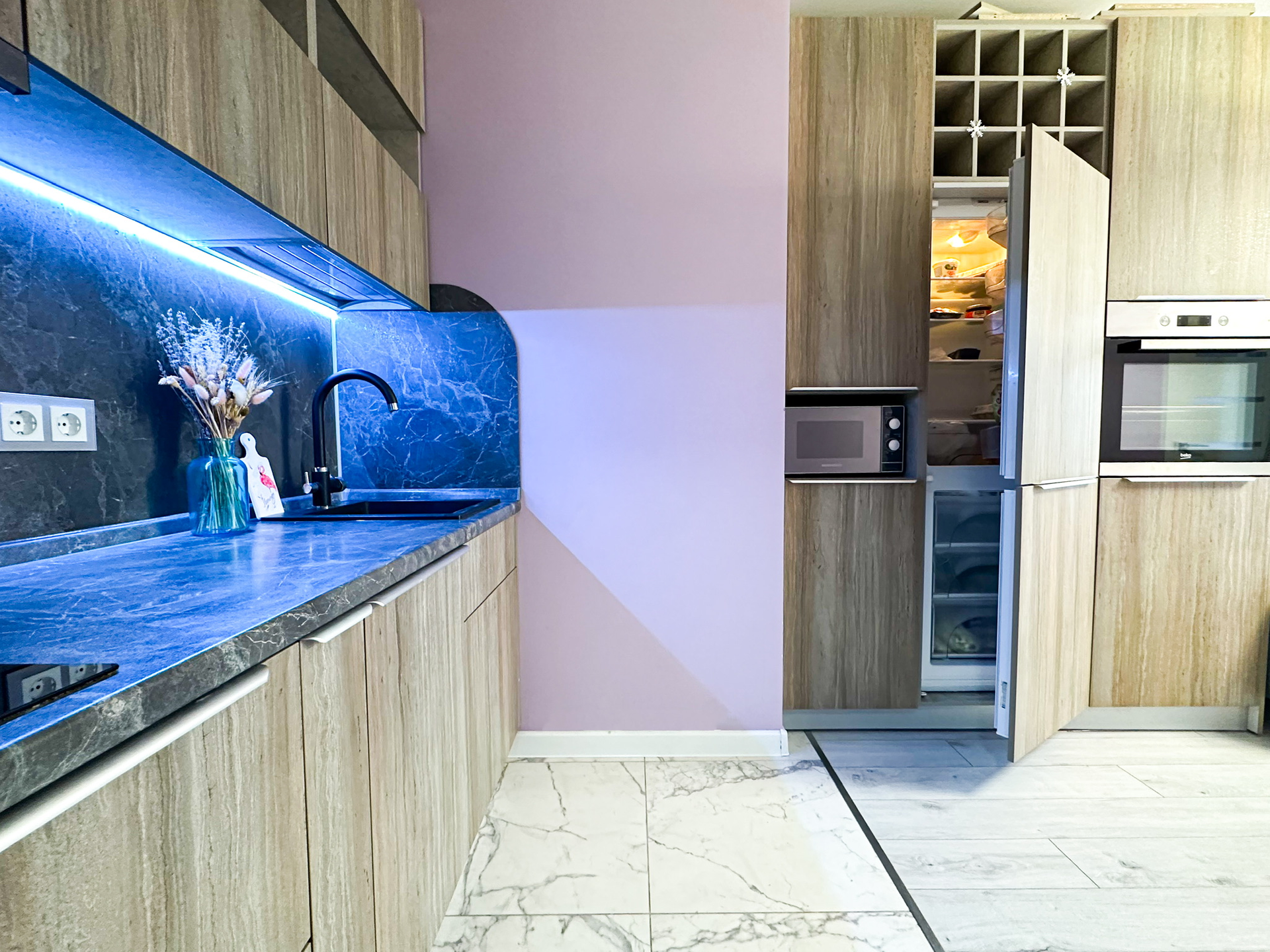 Встроенная кухня, холодильник, стиральная машина, посудомоечная машина, микроволновая печь и вся мебель - входят в стоимость квартиры.