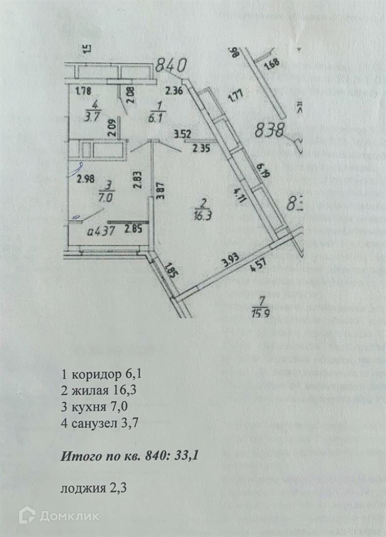 Общая площадь 33.1 м2