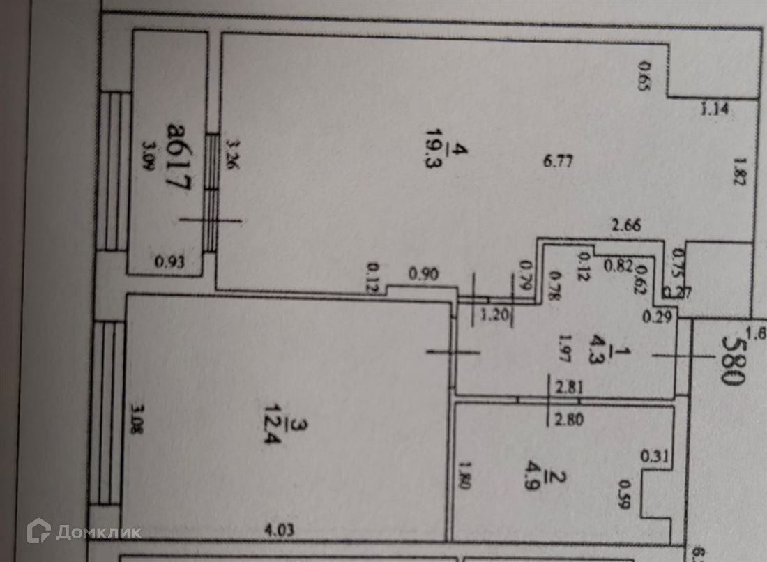 Жилая площадь 12.4 м2