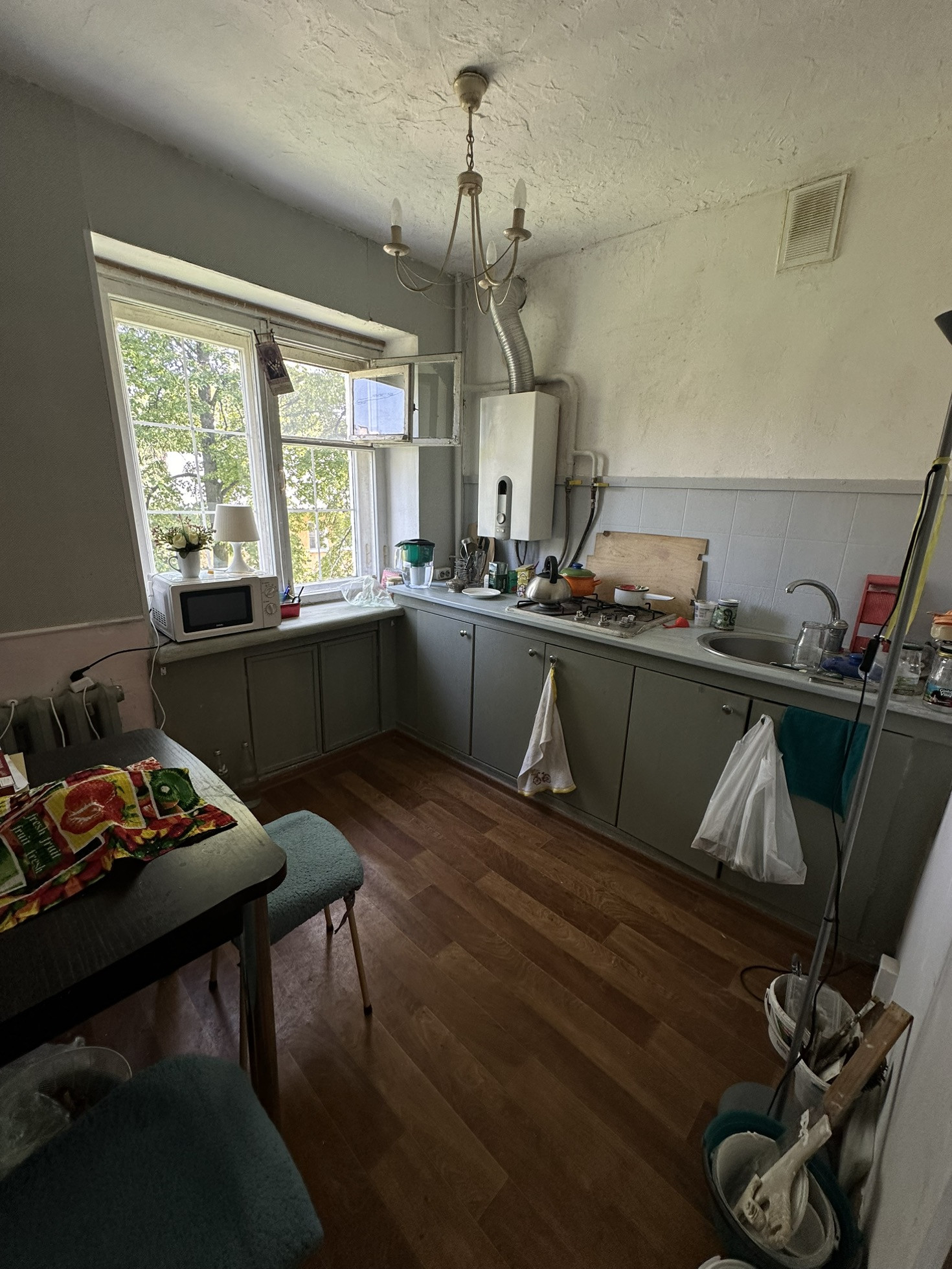 Душевная квартира , светлая , не угловая , зеленый двор . Установлен счетчик на воду. Кладовка в квартире. Хорошие соседи.