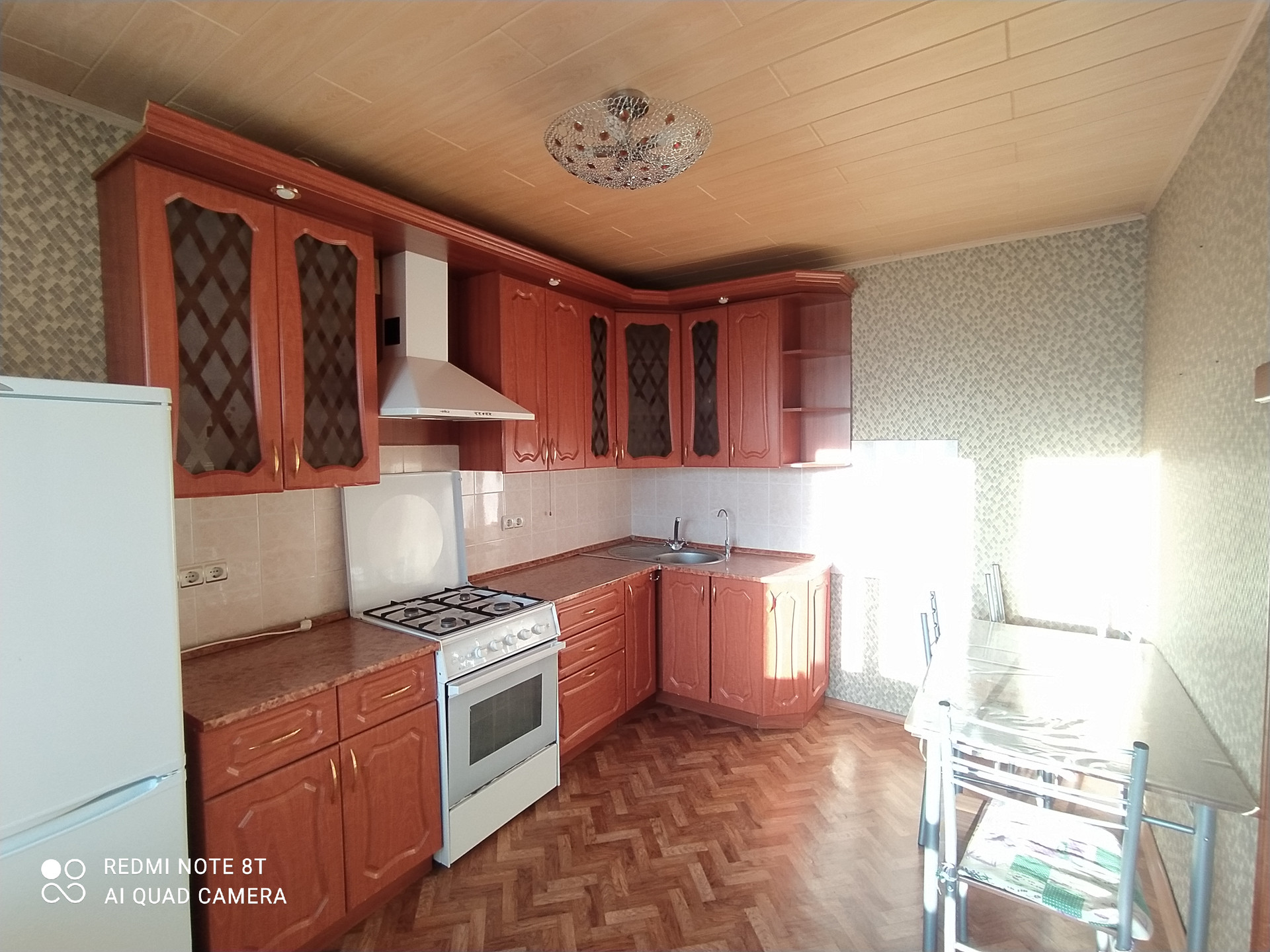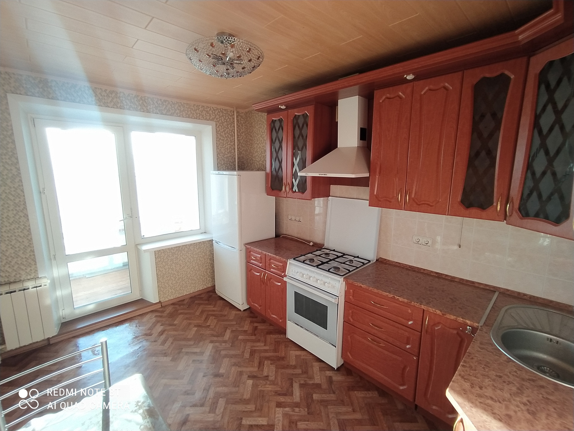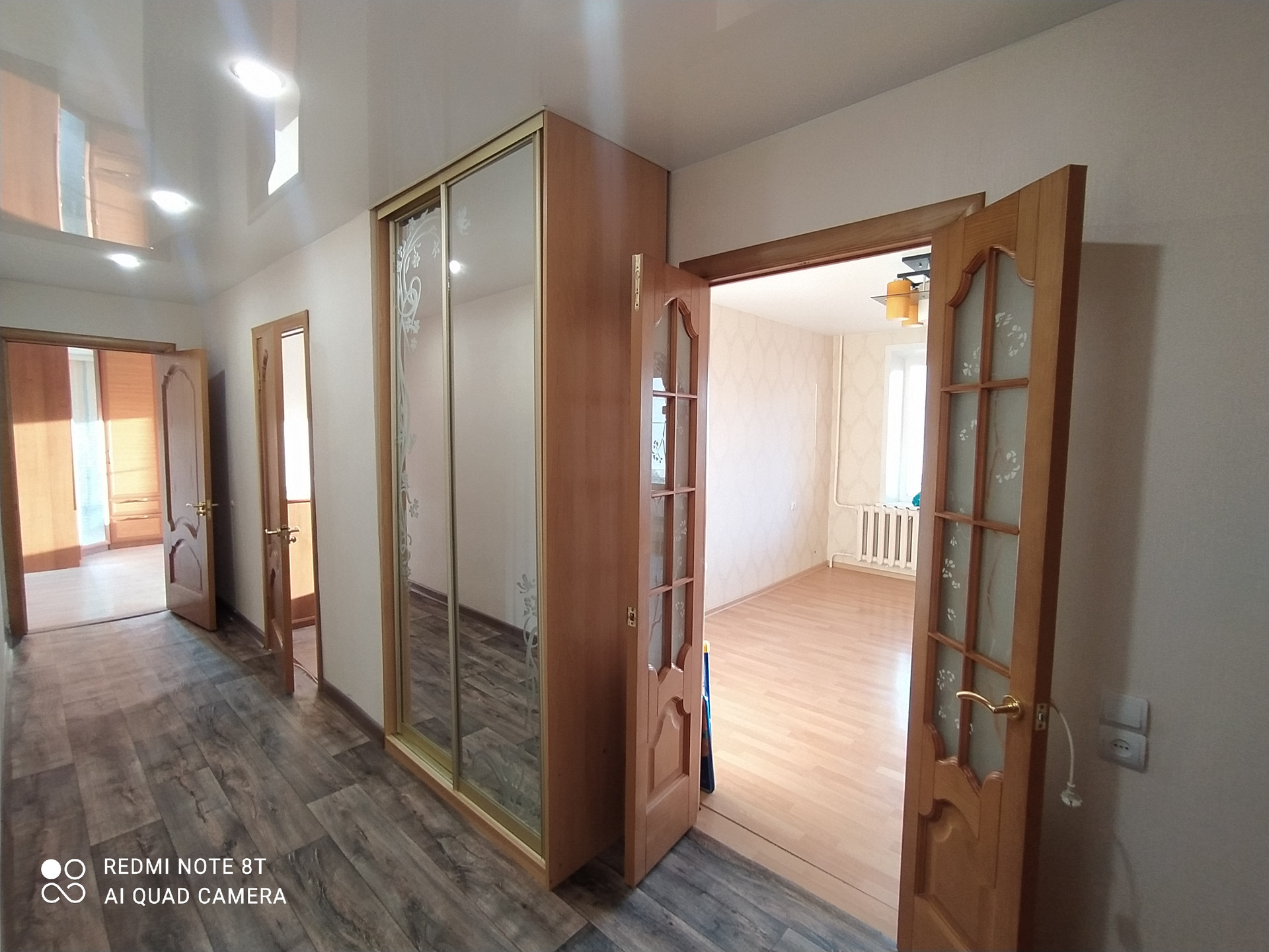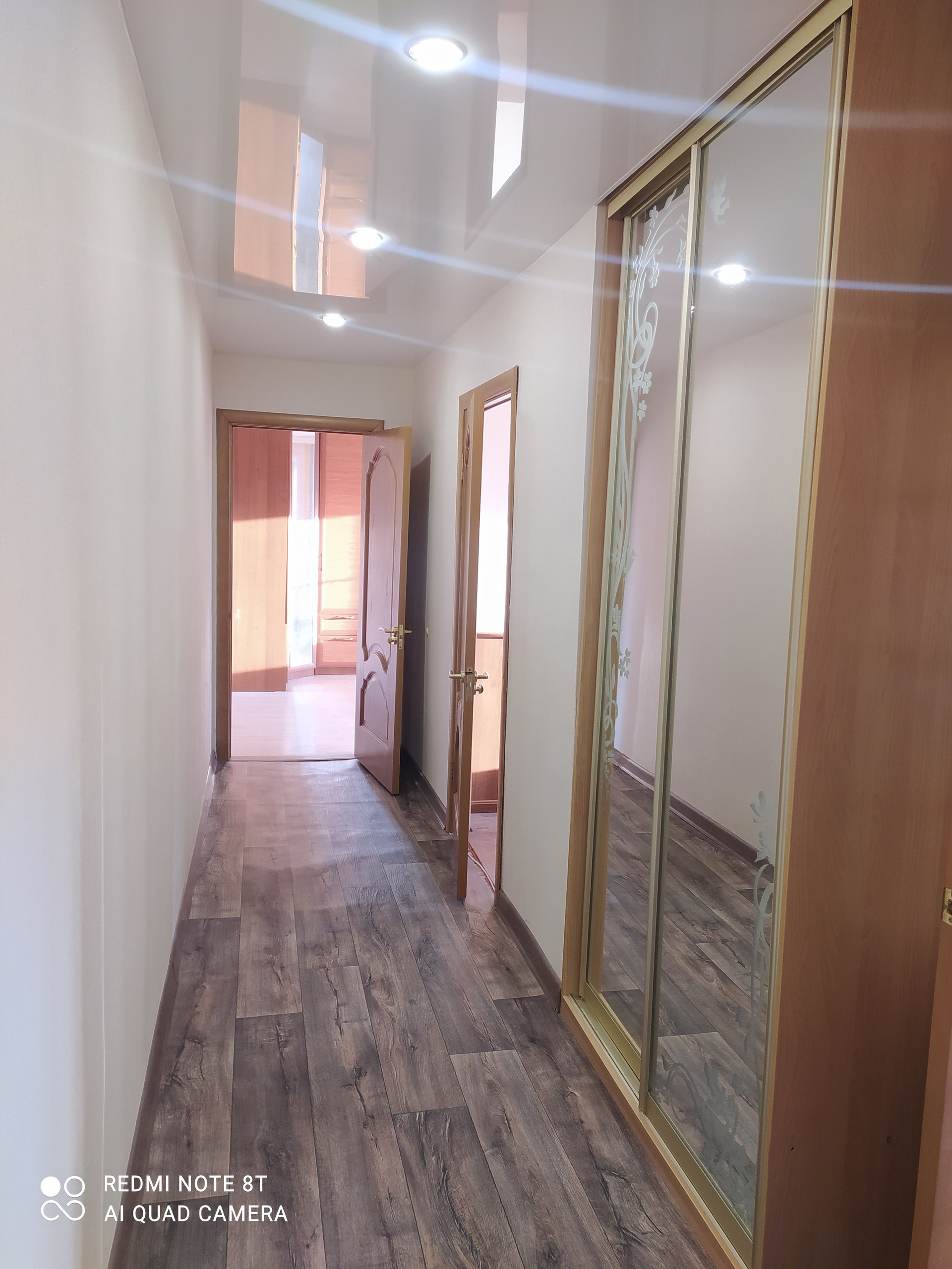 - Натяжные потолки, хорошие межкомнатные двери (шпон), напольное покрытие: ламинат, керамогранит в санузле;