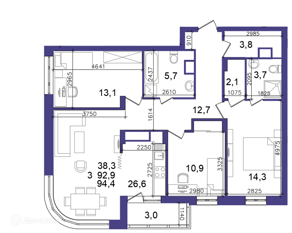 Общая площадь 95 м2