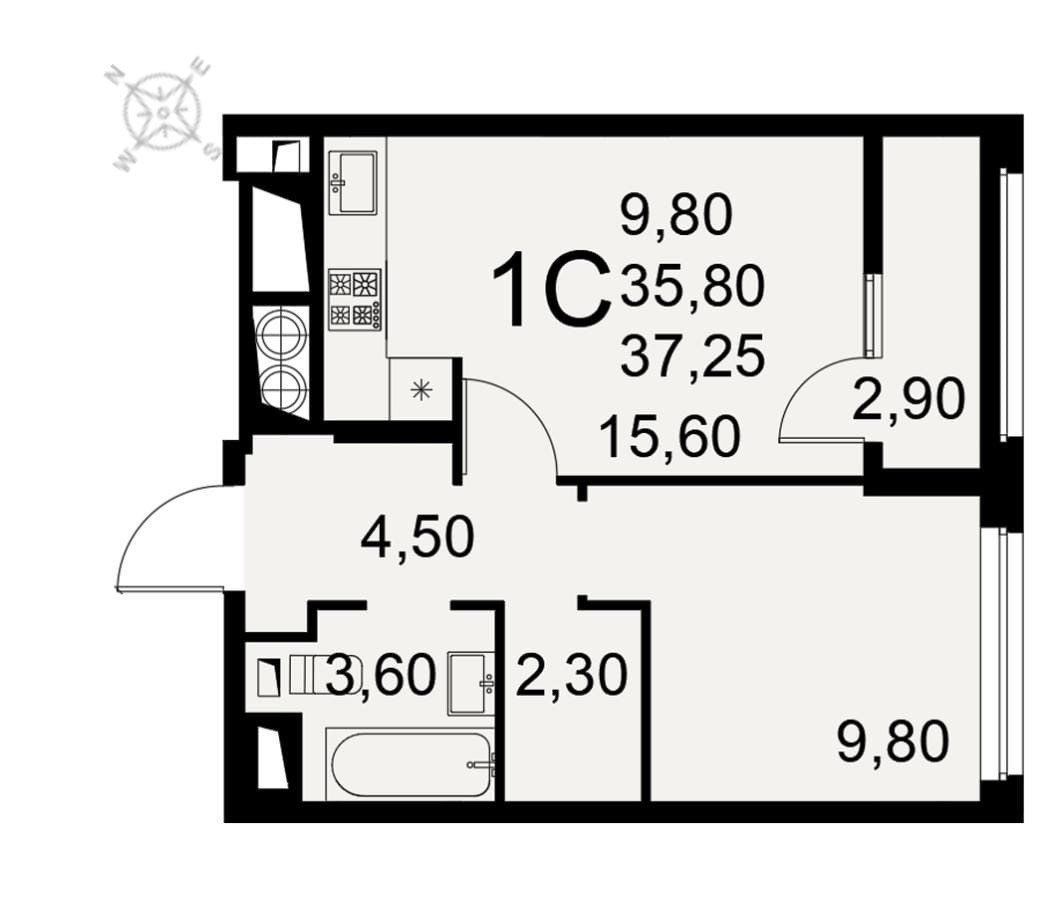 Общая площадь 38 м2