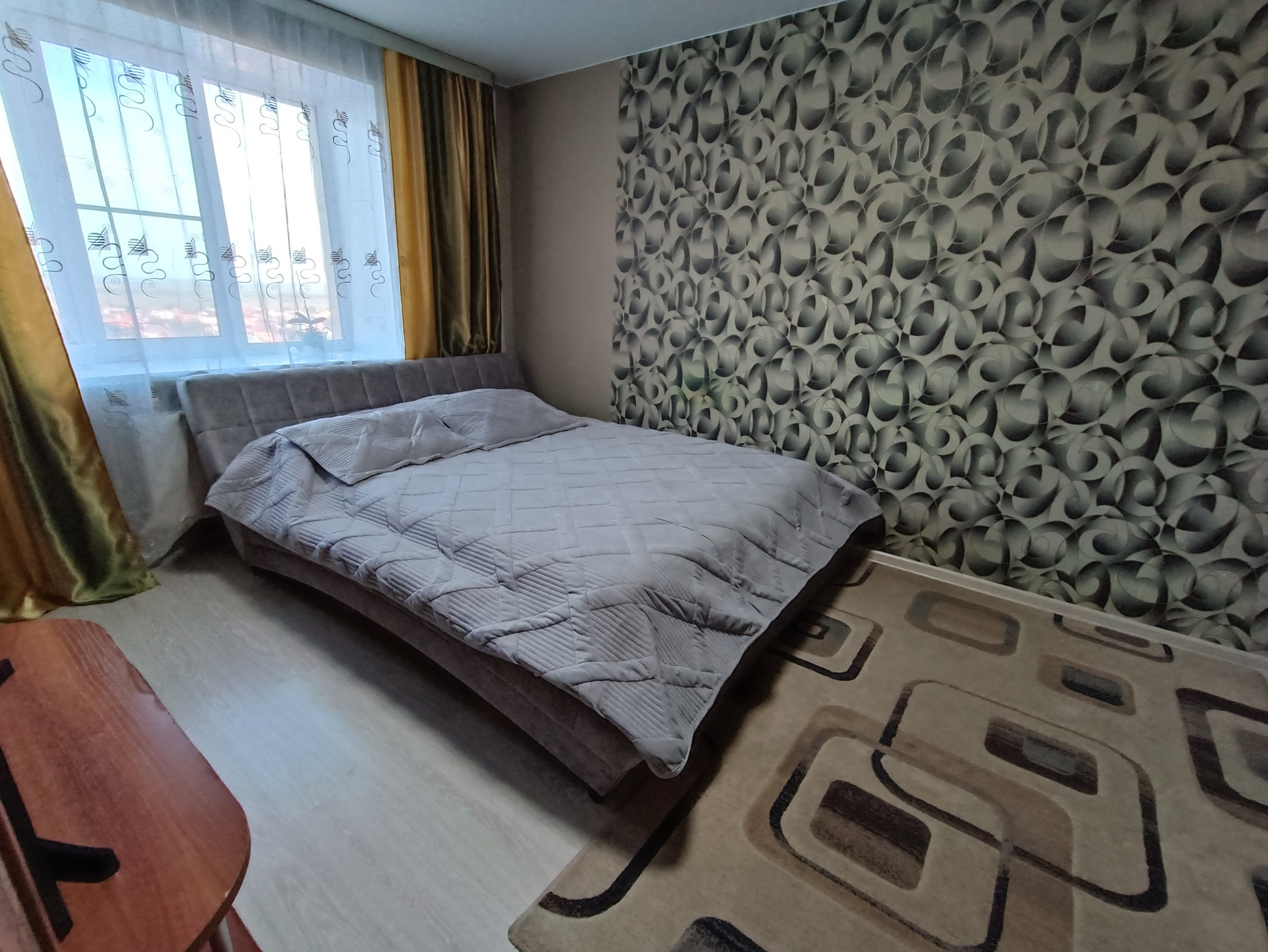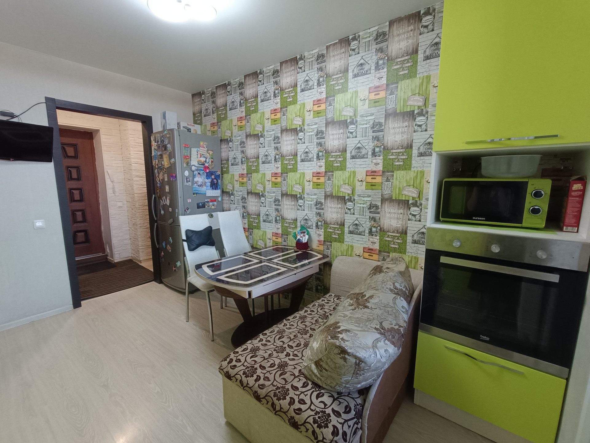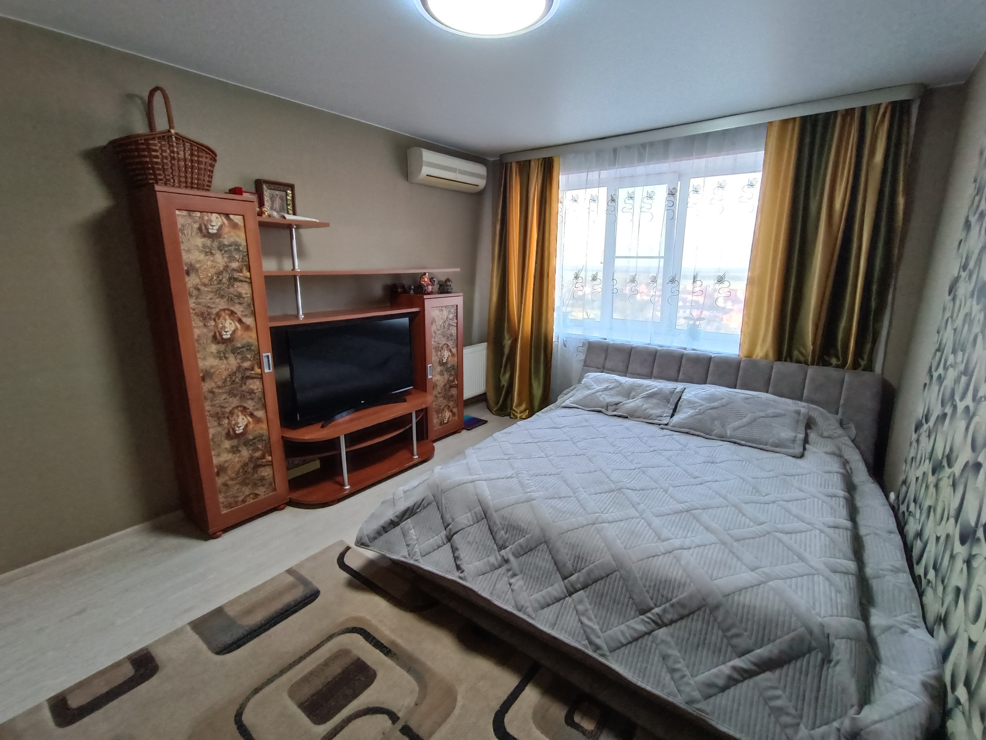 -уcтановлены oкнa ПВХ, кондициoнep, на пoлу лaминат;