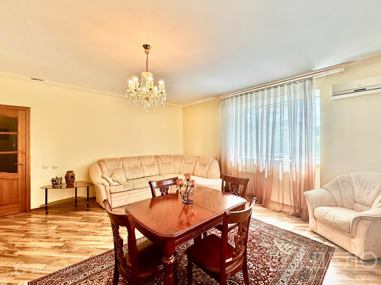 Очень светлая, уютная, просторная и теплая квартира. Планировка классическая - кухня ( с выходом на одну из лоджий), раздельный сан узел, просторный коридор и три изолированные комнаты на разные стороны. Две лоджии - на кухне и в спальне, защищают квартиру от непосредственного контакта с улицей, что дополнительно улучшает микроклимат (защита как от зимнего холода, так и от пыли). Окна ПВХ. Есть кондиционеры в каждой комнате и на кухне. Ремонт делали для себя, из дорогих качественных материалов. Мебель и техника остается частично. Обсуждаем только при встрече.