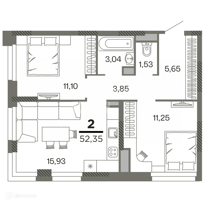 Общая площадь 52.35 м2