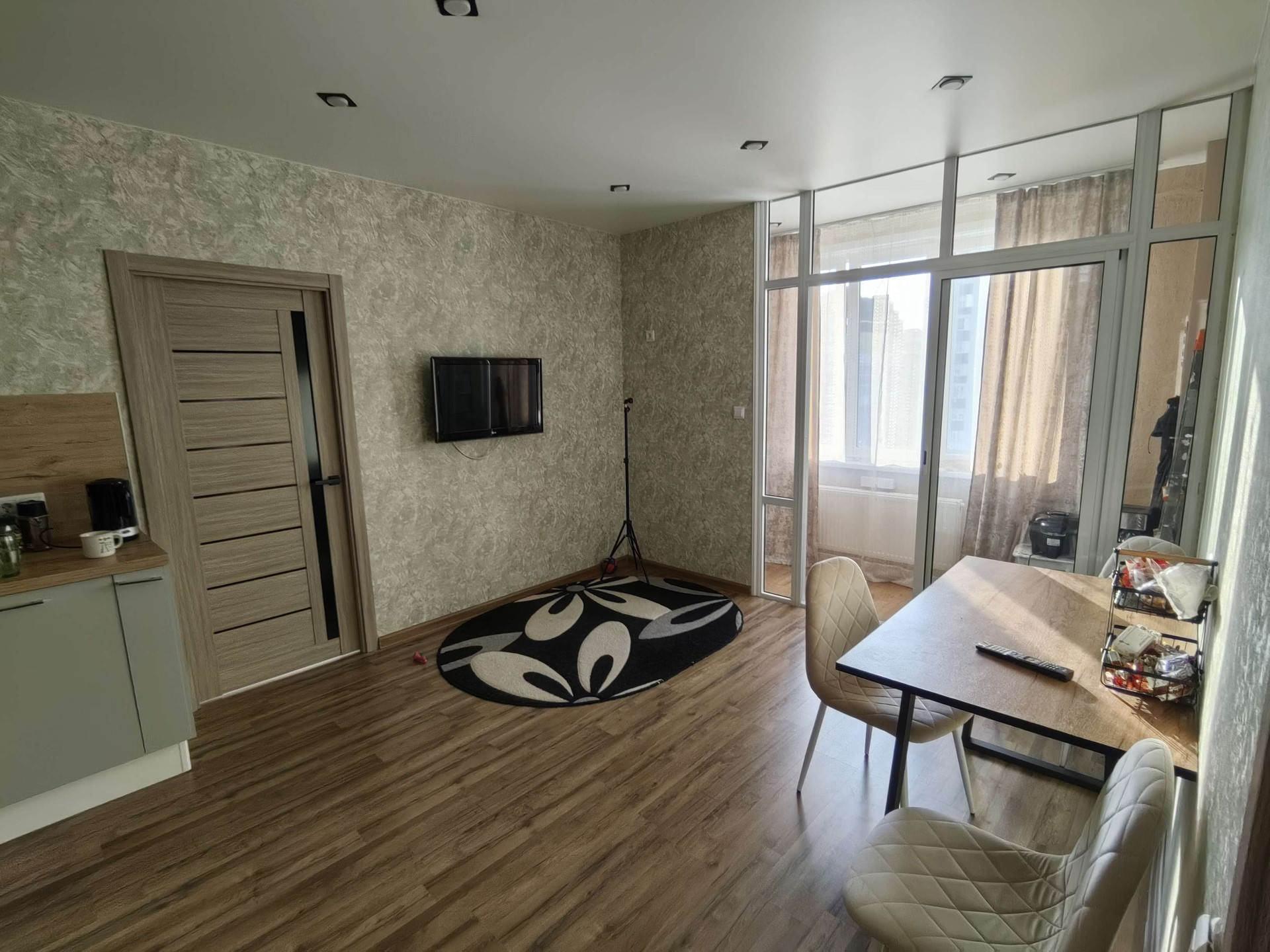 Интерьер квартиры выполнен в стиле евроремонта, что добавляет ей современности и комфорта. Санузел совмещен, что является удобным решением для экономии пространства.