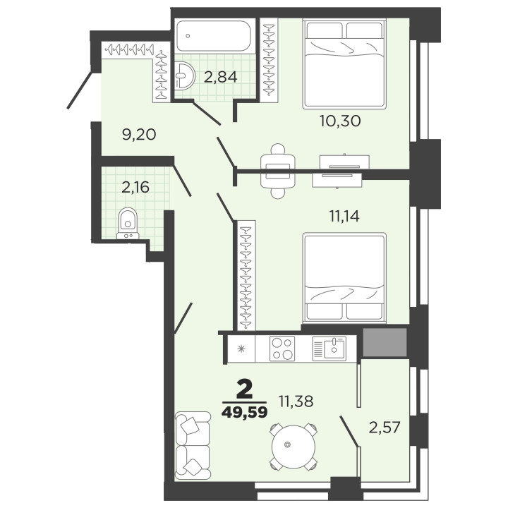 Общая площадь 49.59 м2
