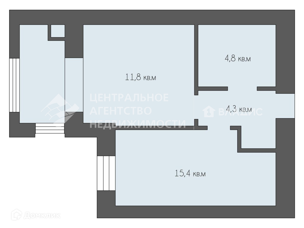 Жилая площадь 15.4 м2