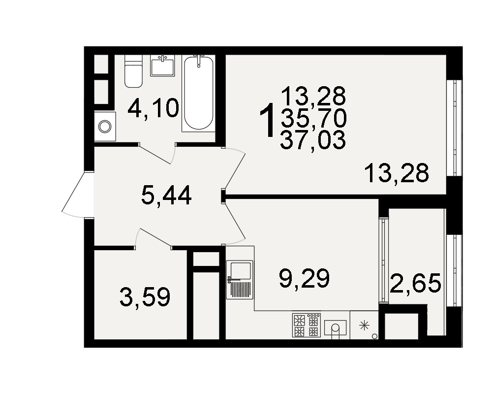 Общая площадь 37 м2