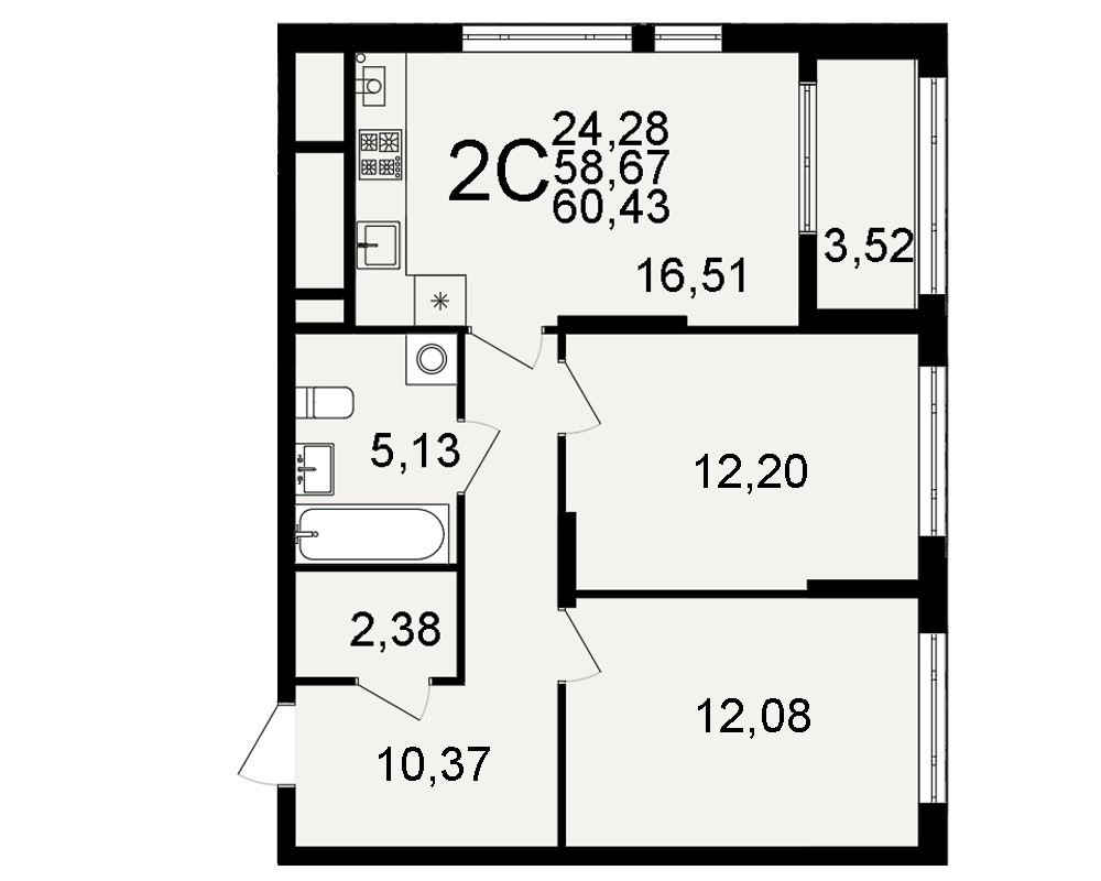 Общая площадь 60 м2