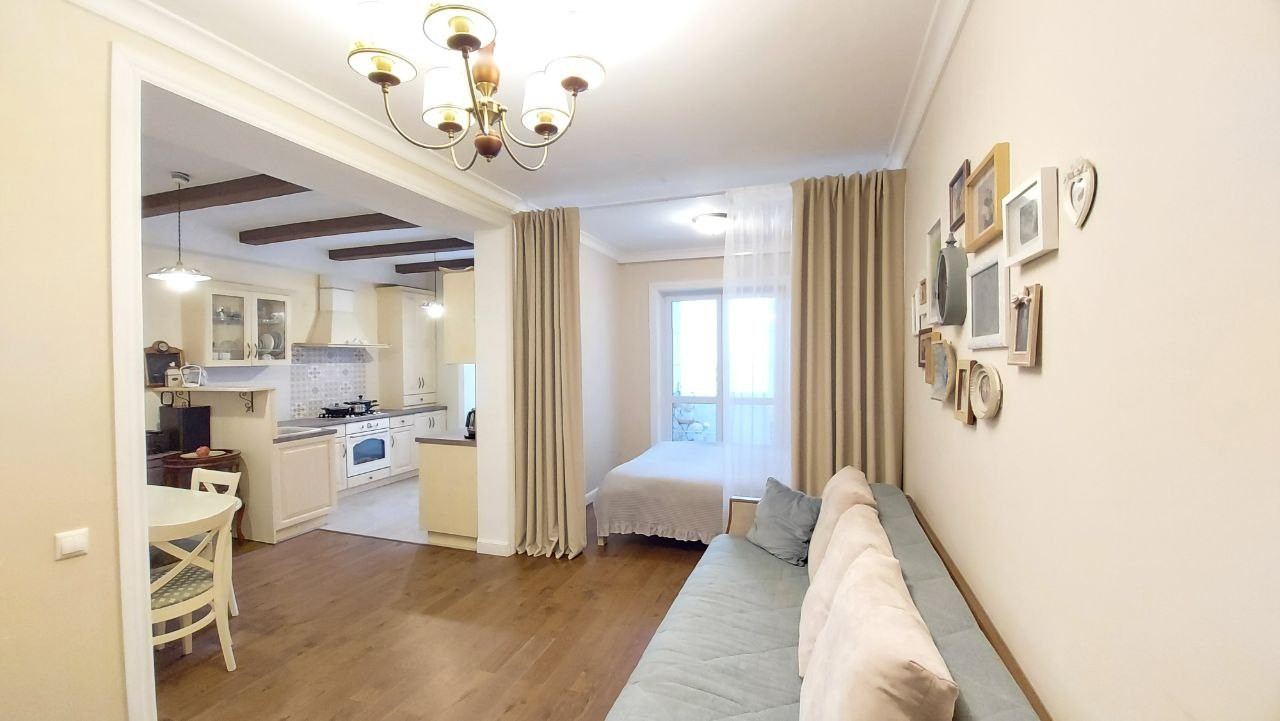Квартира обладает продуманной планировкой: жилая площадь составляет 42.2 квадратных метра, а кухня — 14 квадратных метров. Два балкона предоставляют возможность наслаждаться видами на улицу и организовать дополнительное пространство для отдыха.