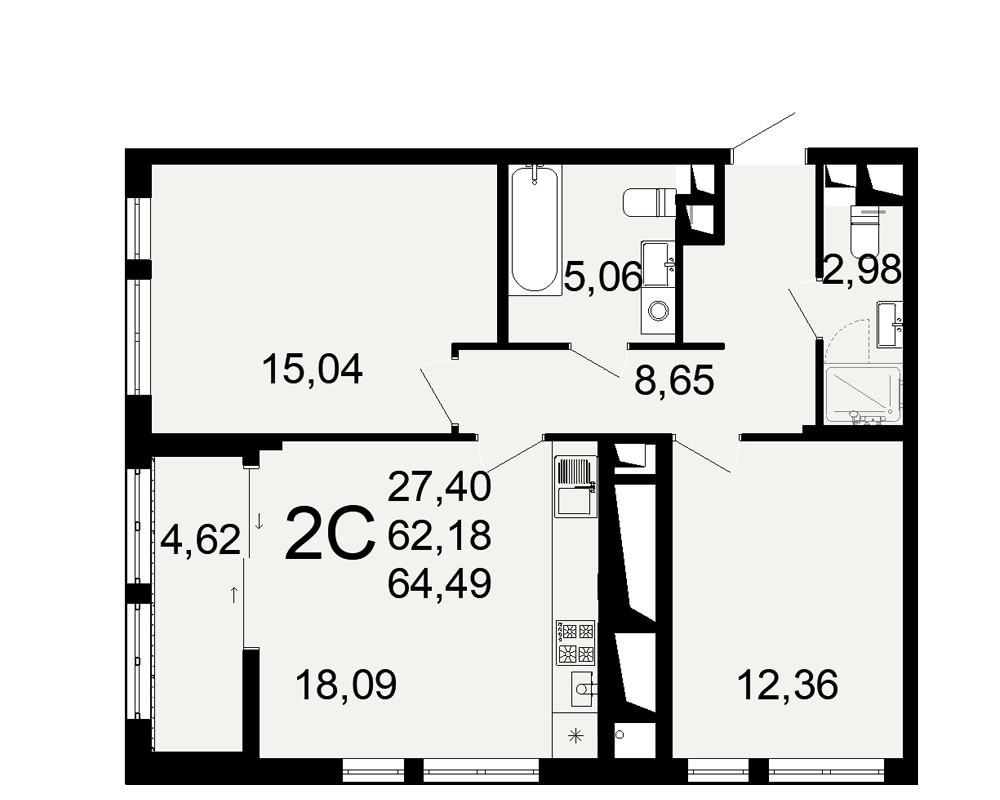 Общая площадь 64.49 м2