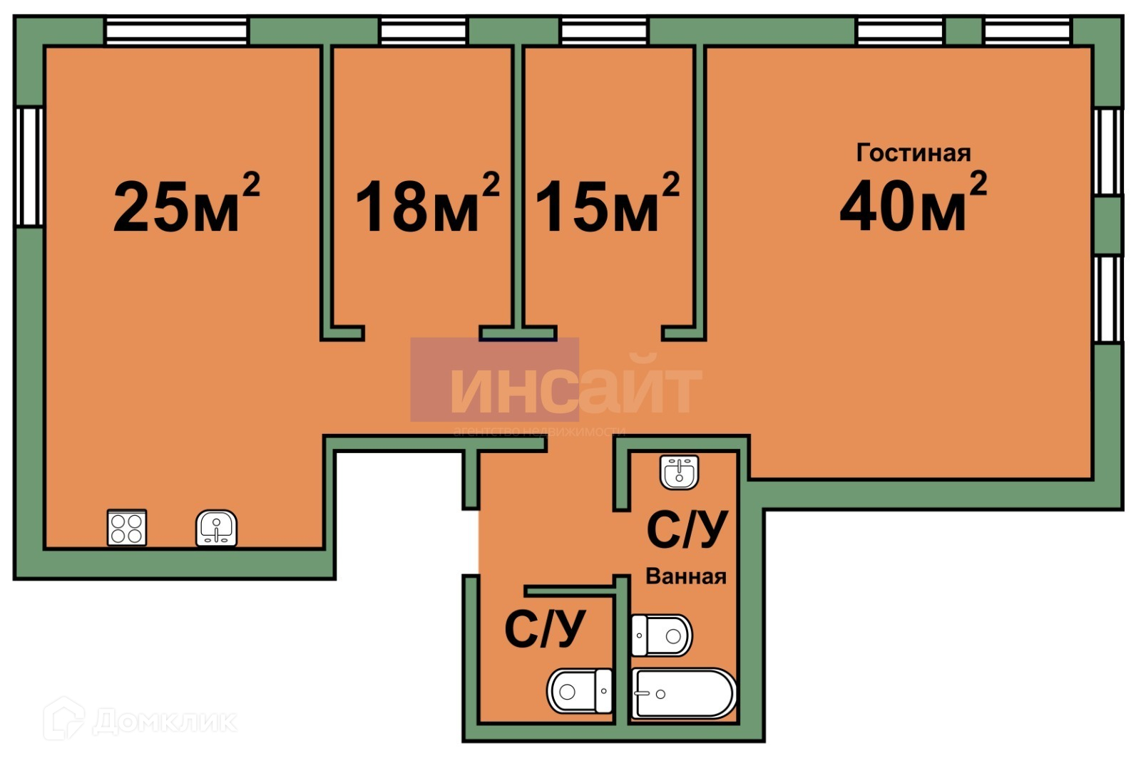 Площадь кухни 25 м2