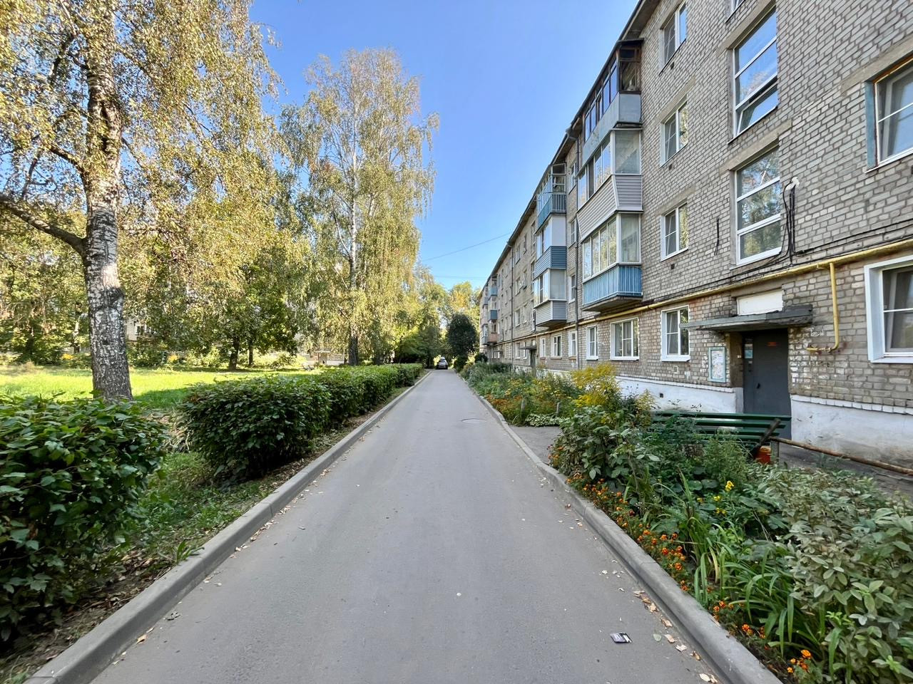 Дом, утопающий в зелени, после полноценного капитального ремонта: косметика подъезда с заменой окон лестничных пролетов, новая крыша, замена внутренних коммуникаций.