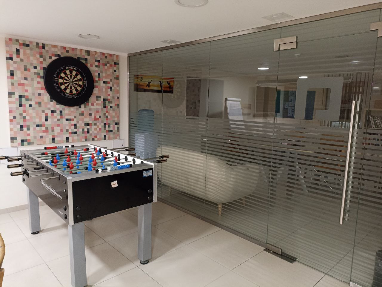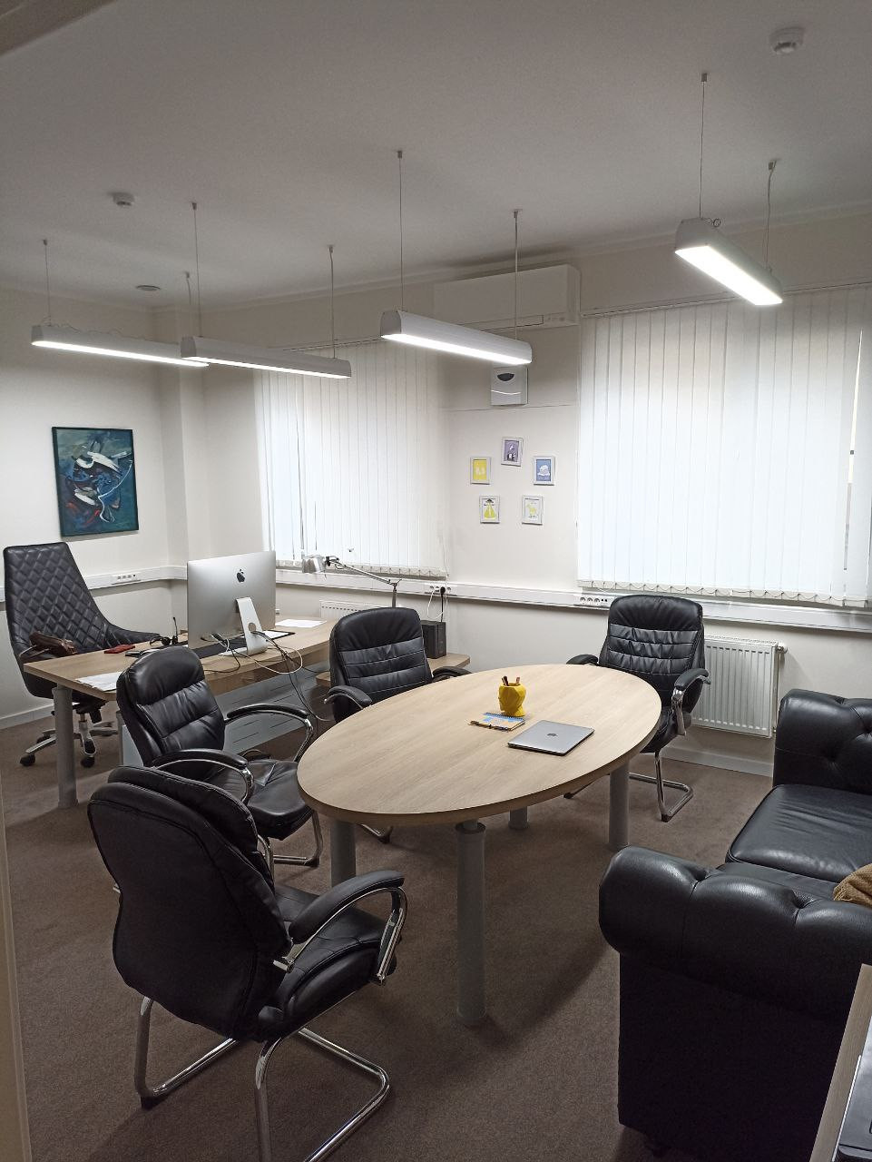 Есть кондиционеры, пожарные краны, охранные системы, видео наблюдение, скуд замки, проложен высокоскоростной интернет.