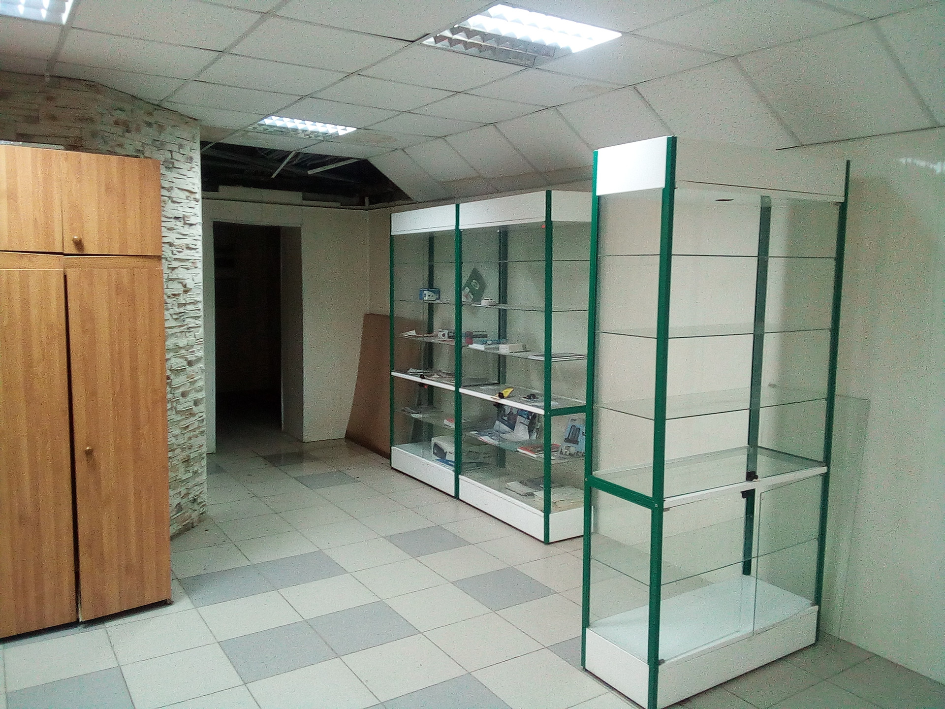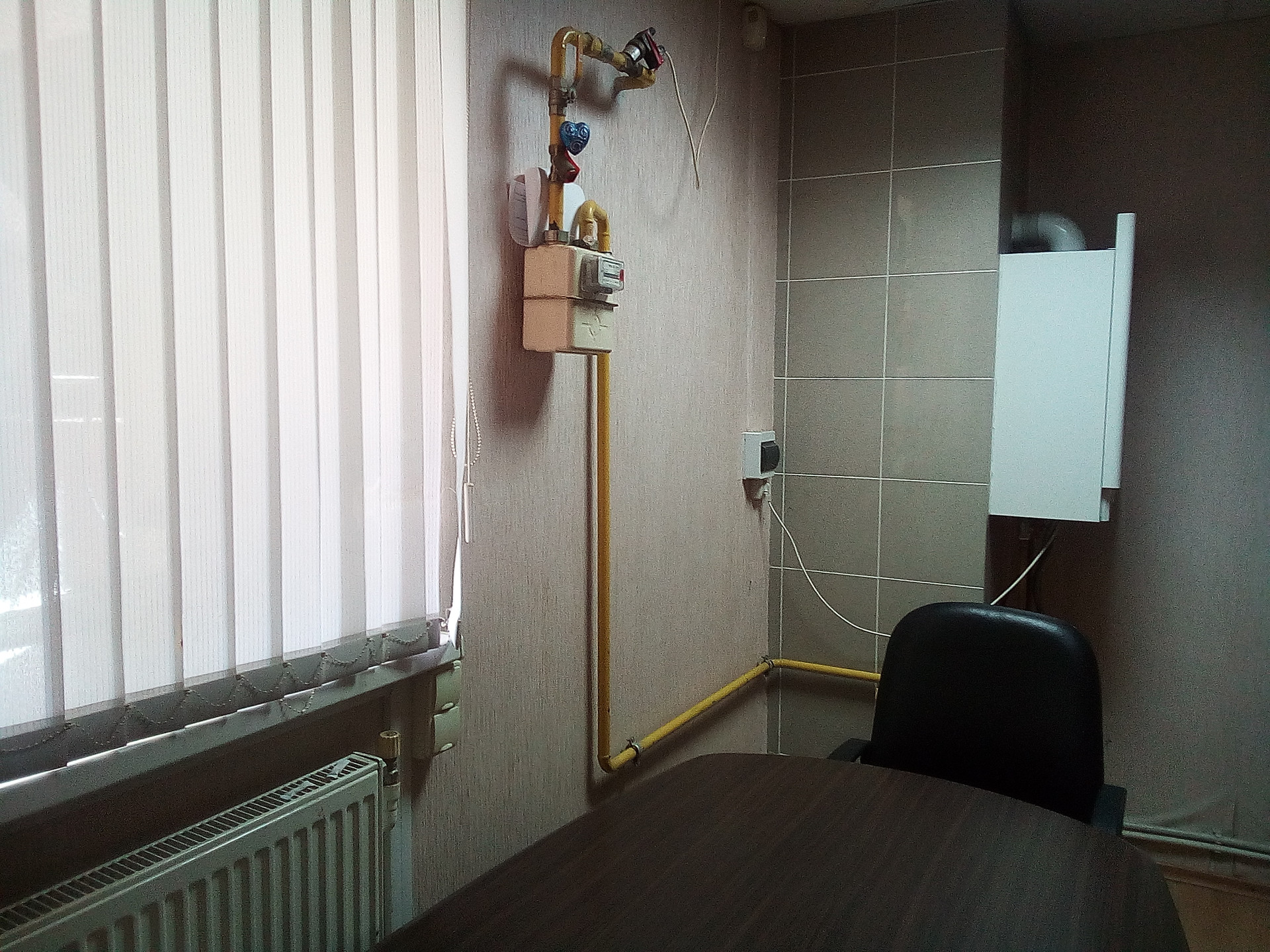 * Состояние хорошее, пол-плитка, стены-пластик. Есть мебель: столы, стулья, стеклянные стеллажи, высота потолков 2,7 м., телефон, свой газовый котел, окна ПВХ. На все есть счетчики (газ, электричество, вода).