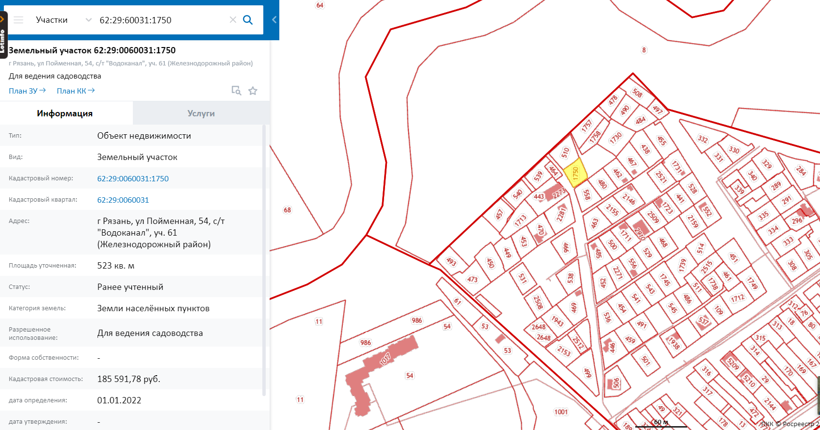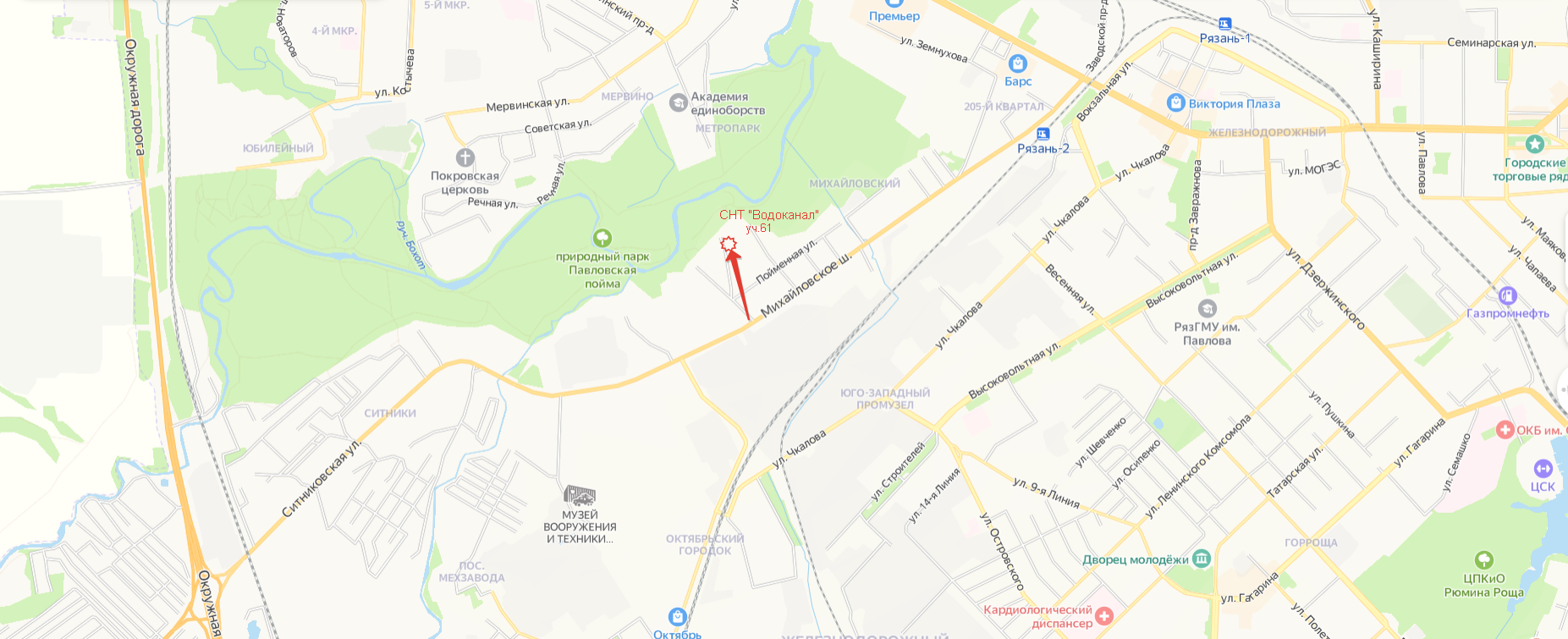 Адрес (местоположение) г. Рязань, ул. Пойменная, 54, с/т "Водоканал", уч. 61 (Железнодорожный район)