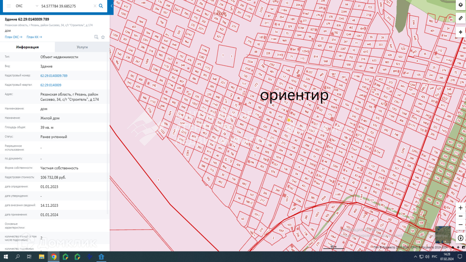 Продается участок в черте города: г. Рязань район Сысоево, 34, с/т Строитель.