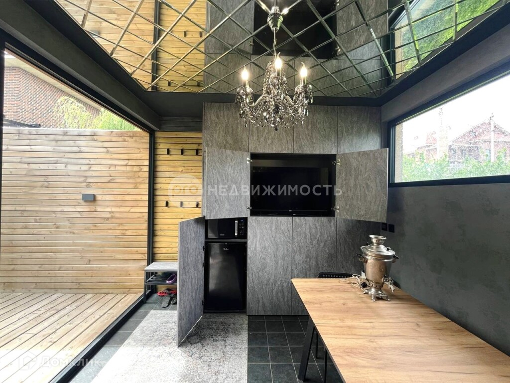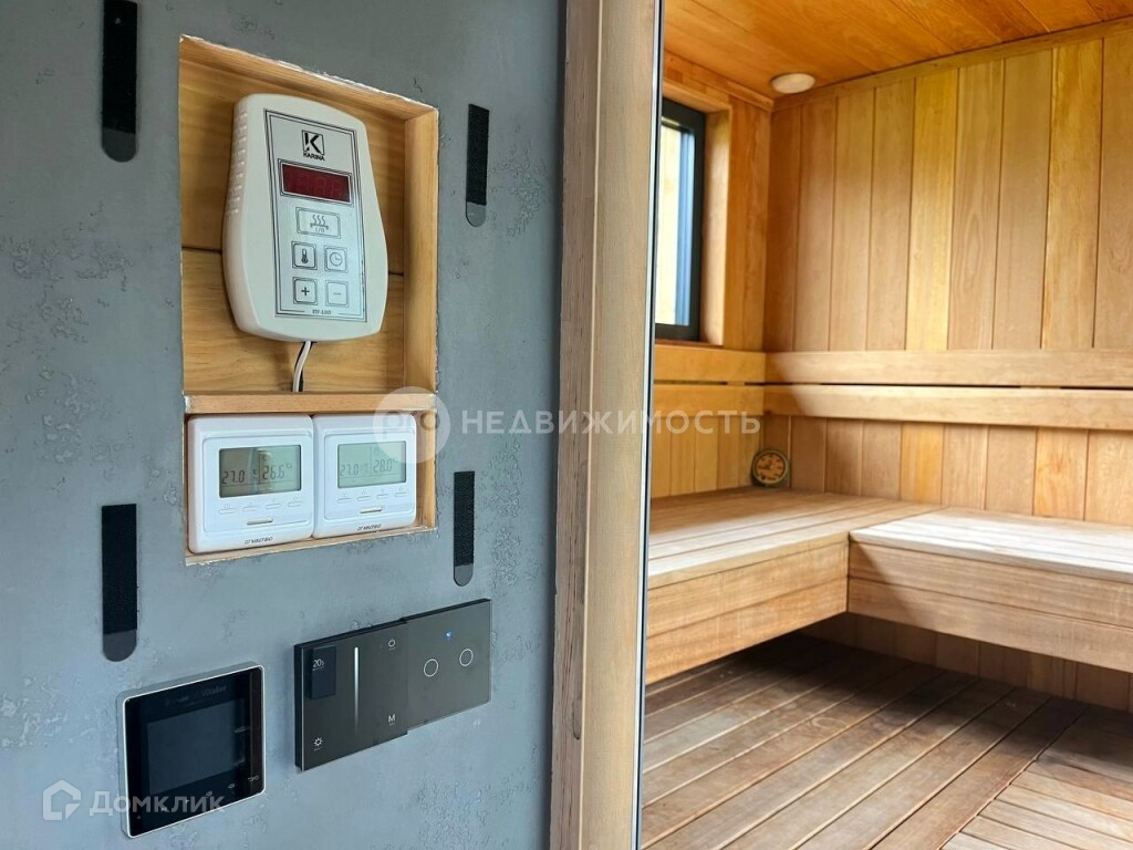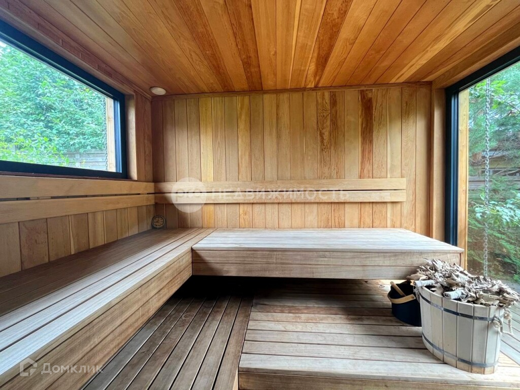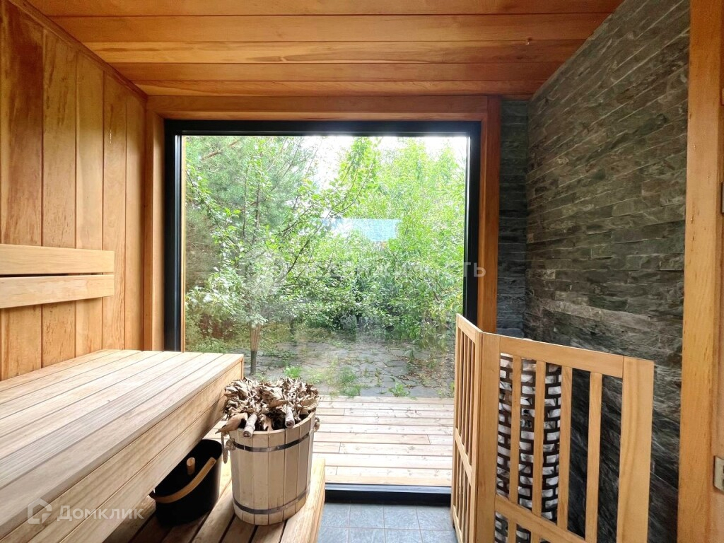 Современная баня - построенная в 2023 году, с отделкой из кедра и абаша. Площадь 18 м², обустроена душевой, туалетом, .электрическая печь. Тёплый пол во всей бане. В парной панорамное остекление, оформление подсветками. Имеется просторная комната отдыха, с закрытой системой хранения.(в бане установлен газовый котёл).
