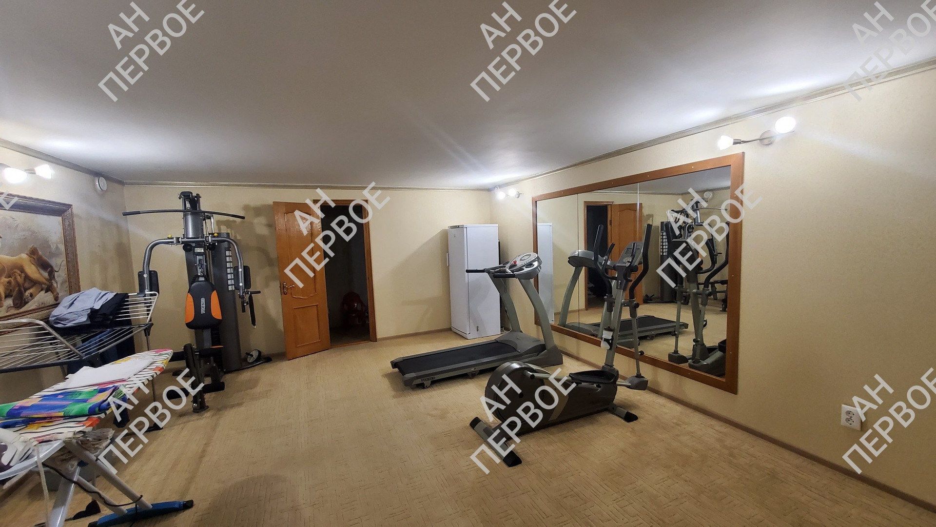 Дом в два полноценных этажа, плюс цокольный этаж используемый как тренажёрный зал и игровая комната.