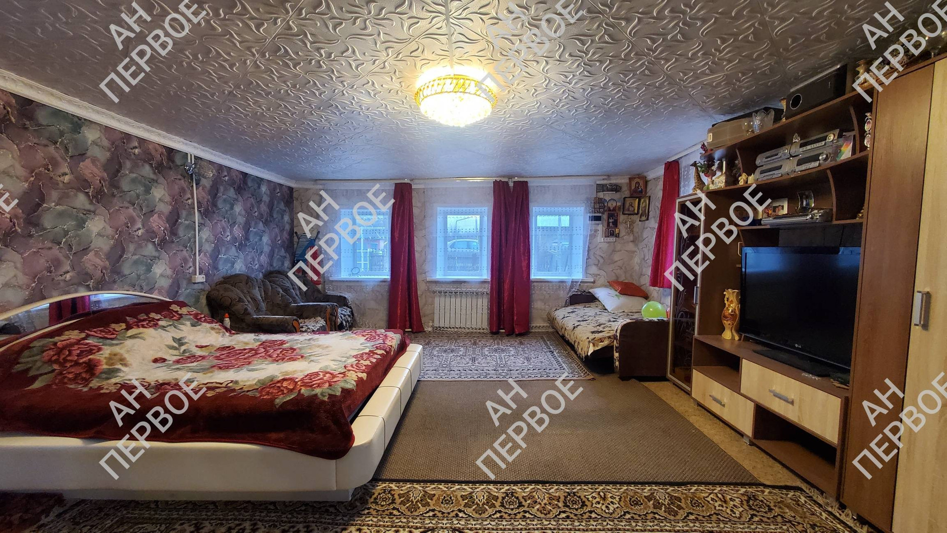 В доме 3 комнаты, большая кухня, санузел с тёплым полом. Все коммуникации в доме. Вода - своя скважина. Канализация - новая выгребная яма.