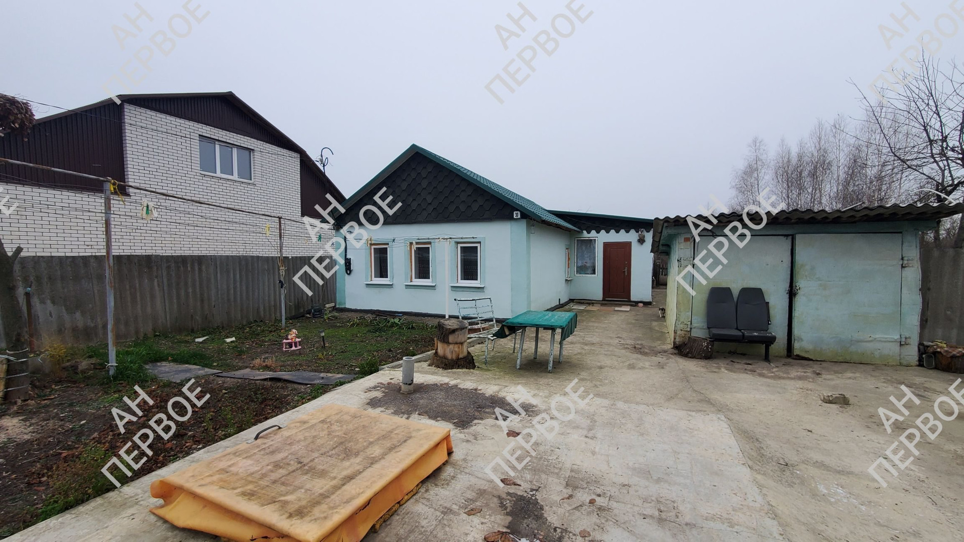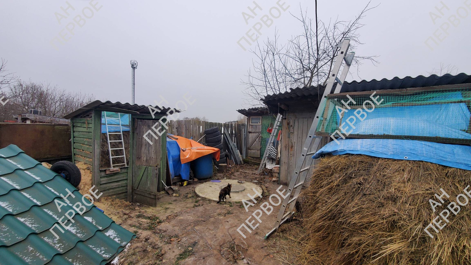 На участке хозпостройки, гараж.
