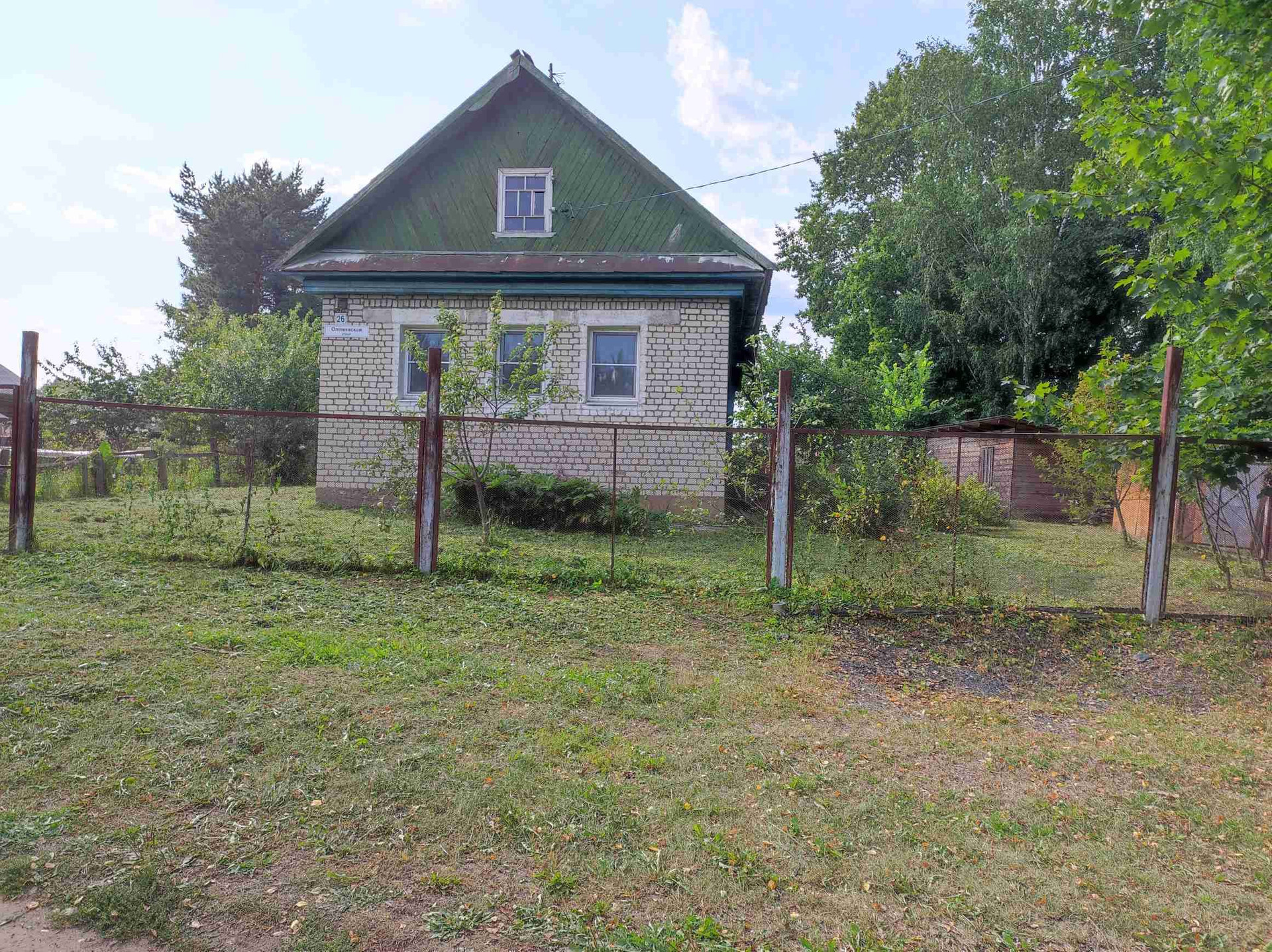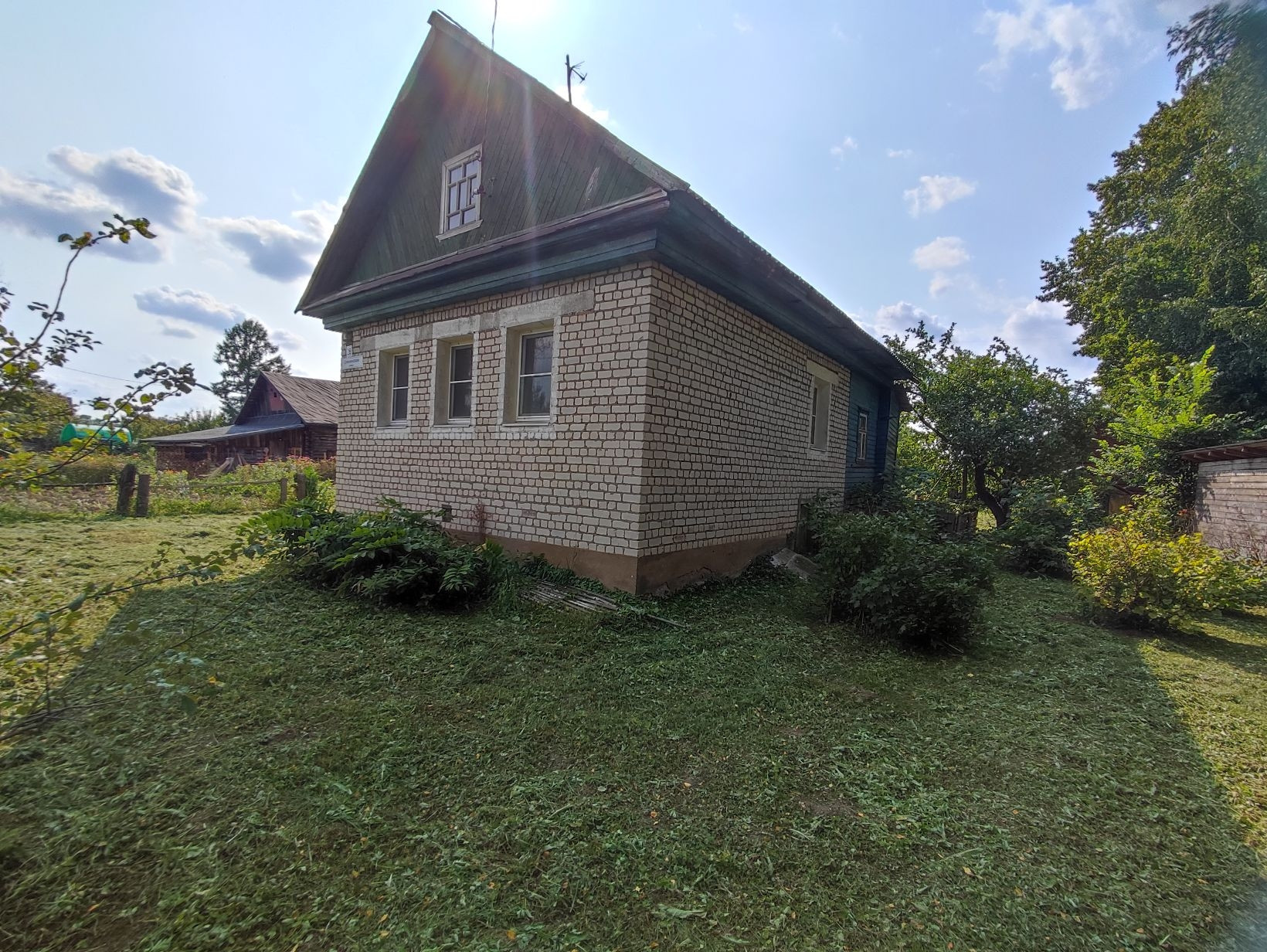 Перед домом много незапользованной земли, так как напротив нет соседей. На пригорке два дома, основная дорога идёт под горой.