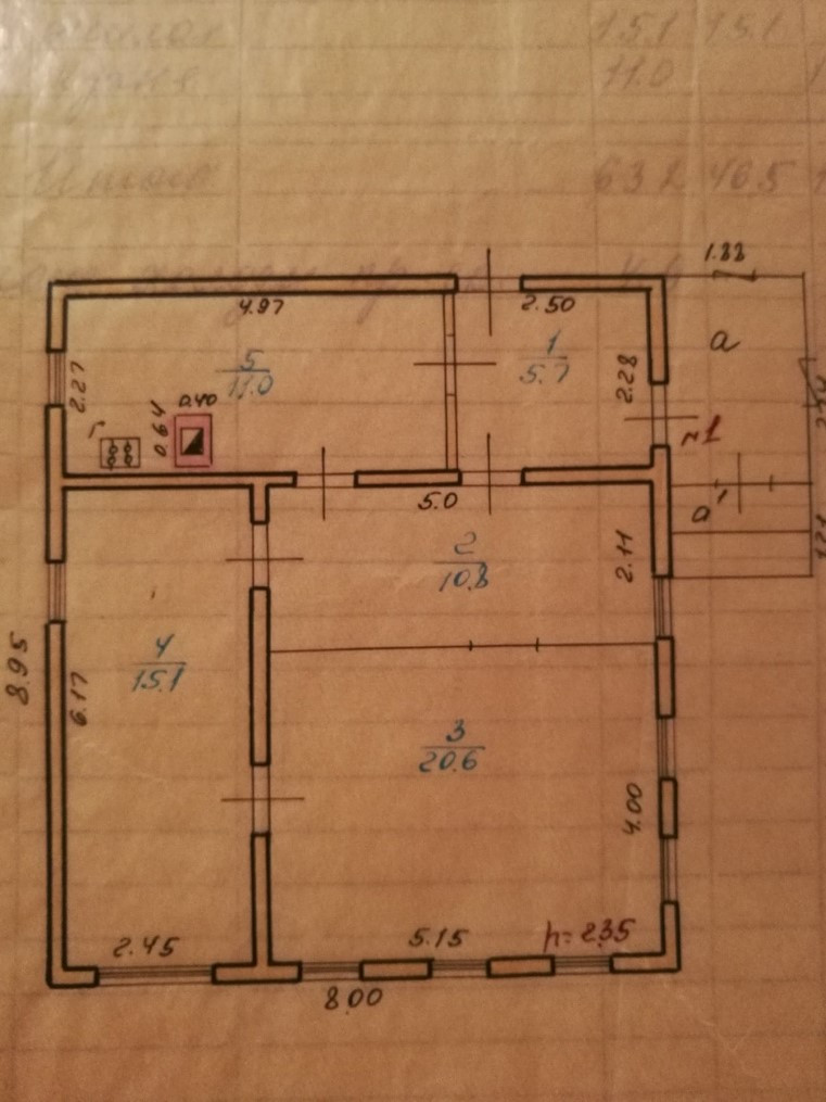 B доме 3 комнаты -10,8 кв.м.;20,6 кв.м.;15,1 кв.м., куxня 11кв.м.,коpидоp 5,7 кв.м..