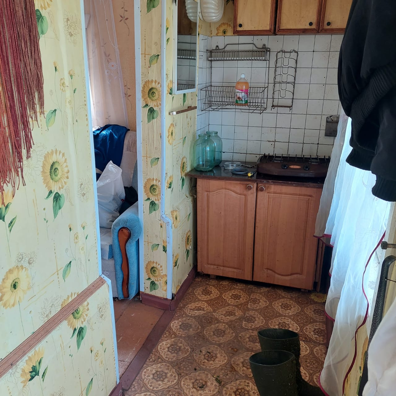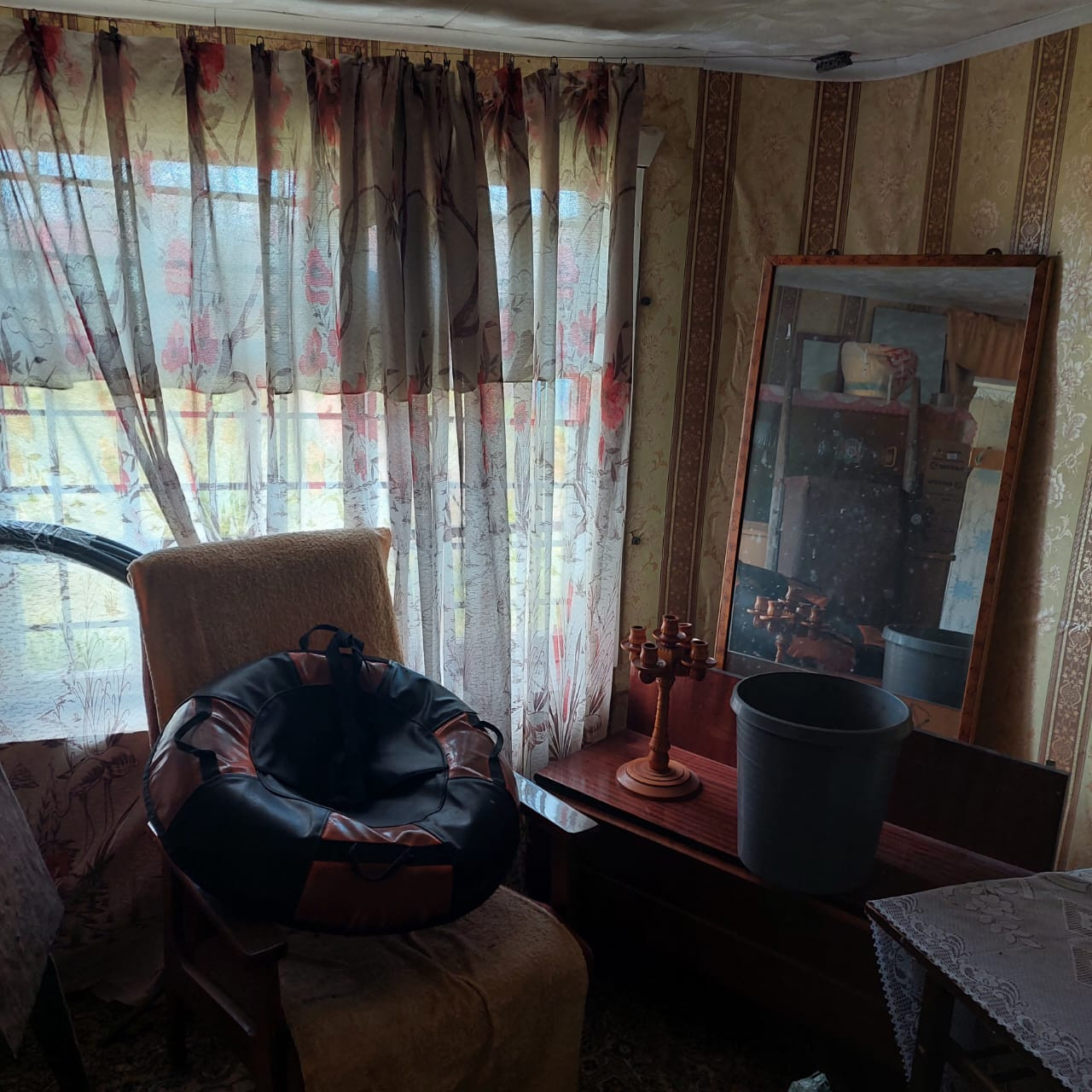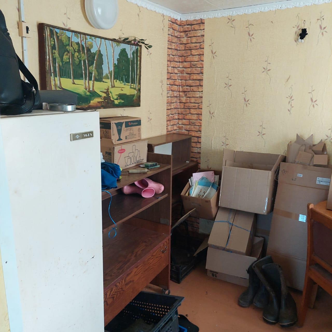 В доме 2 благоустроенных комнаты, кухня, имеется бетонный, глубокий кессон 2×3 м. кв., на окнах решетки, электрическая плитка, есть подводка к газовому балону, холодильник, мебель, посуда.