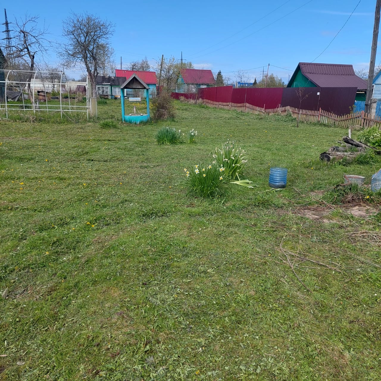 Участок ровный, сухой, частично культивированный, с садовыми насаждениями, цветами, имеется колодец для питьевой воды и для полива (не пересыхает ),в конце участка имеется еще один садовый домик, но в среднем состоянии для хозяйственных нужд.